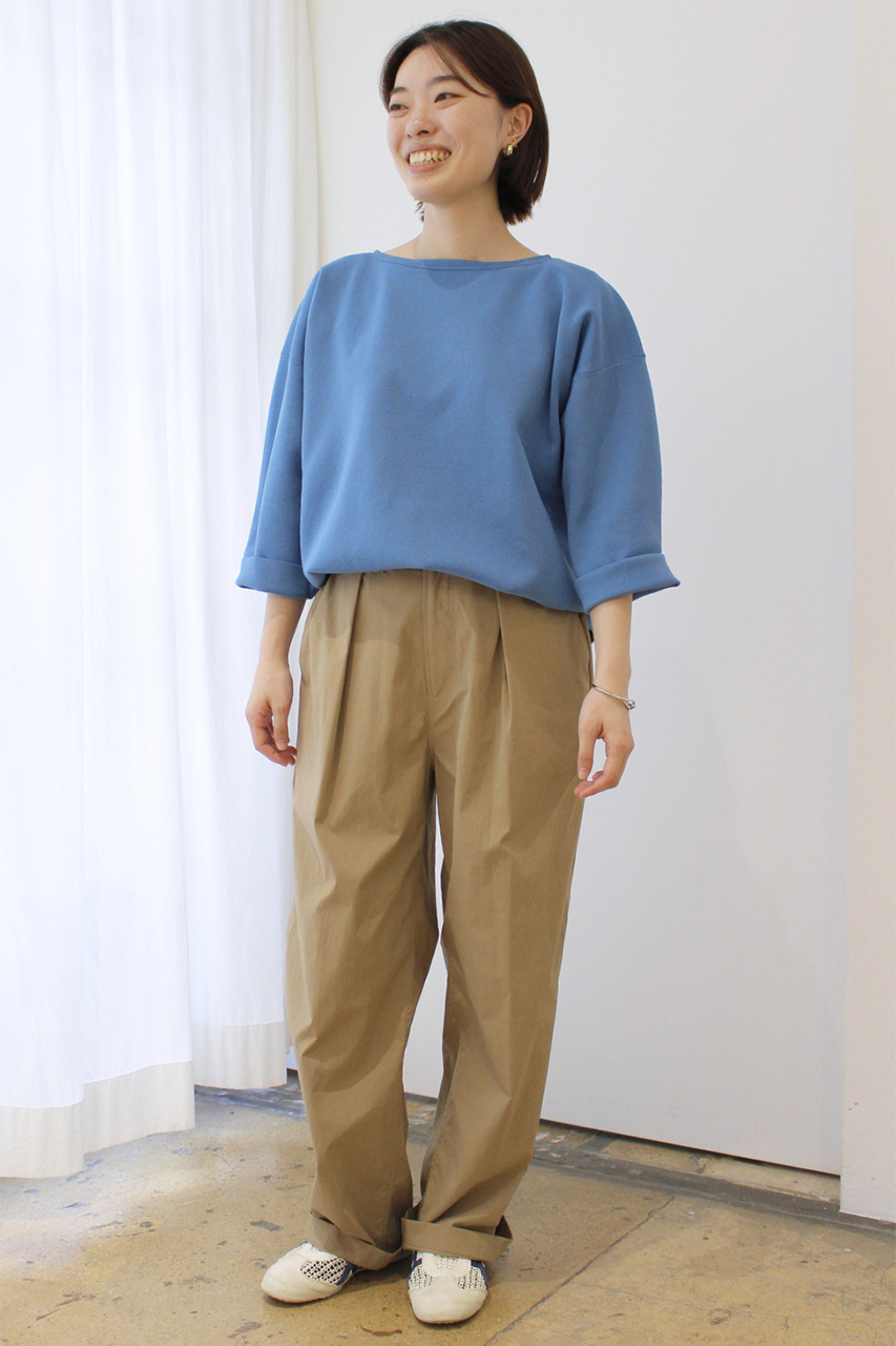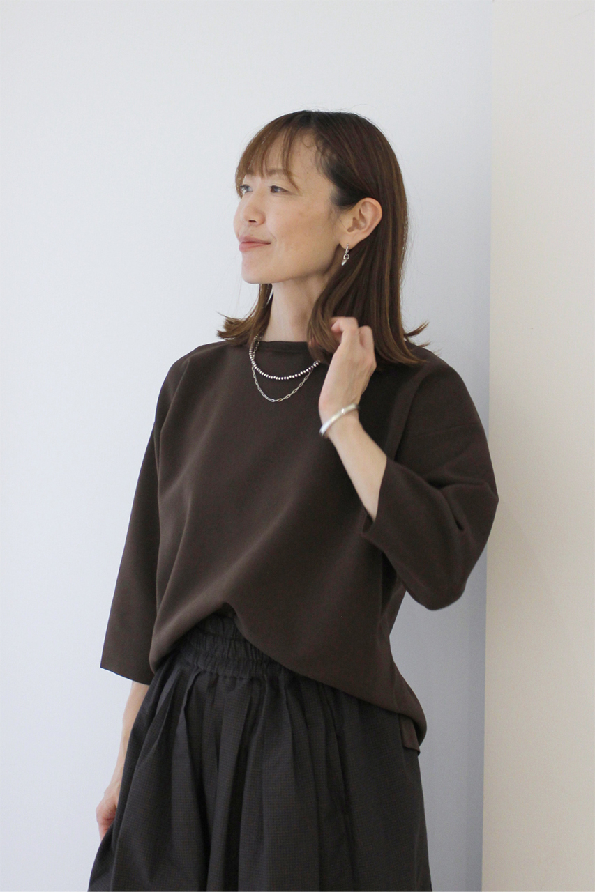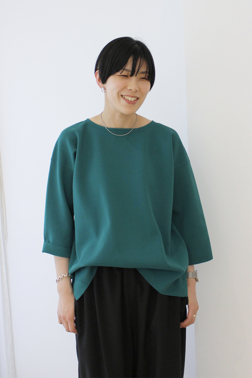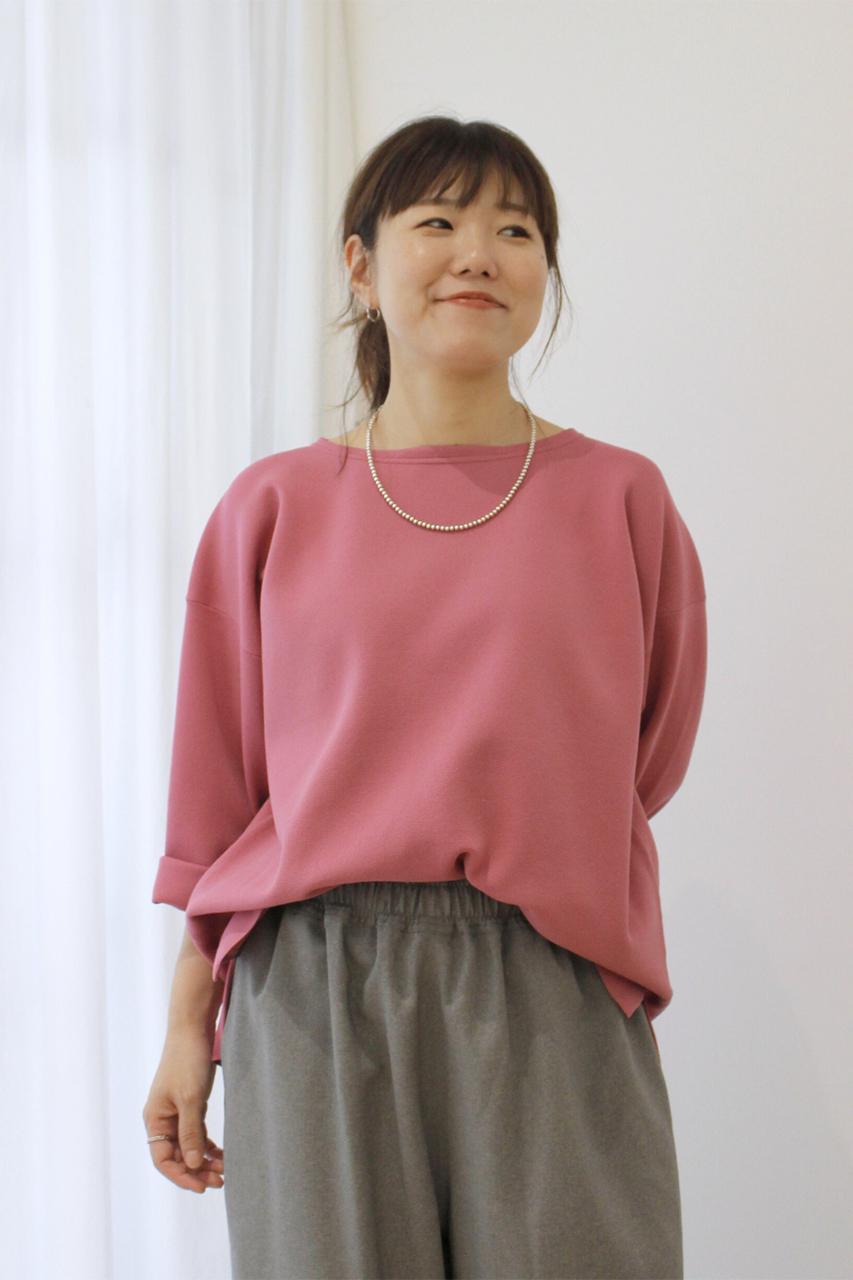 今回のハイテクニットはワイドスリーブでご用意しました。袖には立体感を高めるミラノリブを採用し、新しいエッセンスを入れることでよりこなれた印象に。ほぼオールシーズン着れる高いドライ感をはじめ、型崩れもほとんど無く、ピリングにも強く、洗濯機で洗えてすぐ乾く。毎日手に取ってしまうような便利さがポイントです。