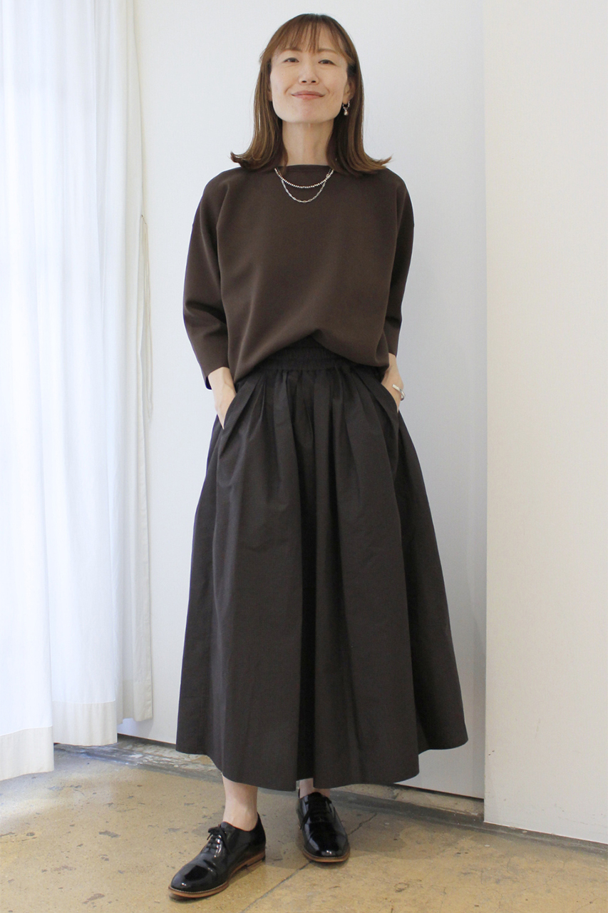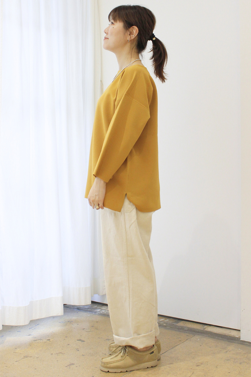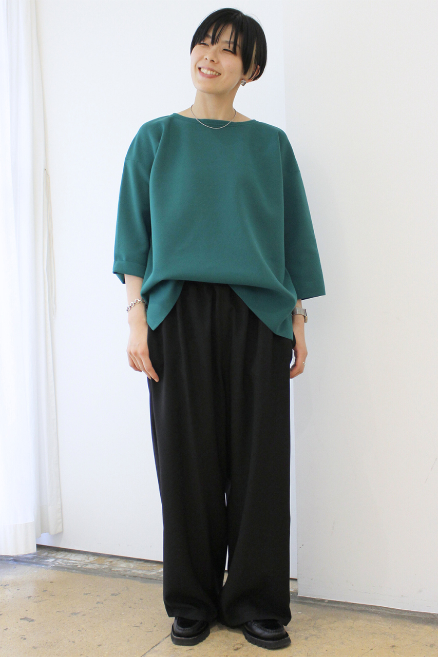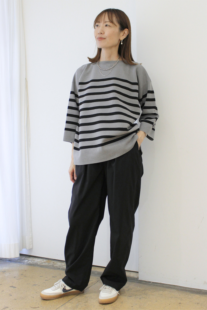 今回のハイテクニットはワイドスリーブでご用意しました。袖には立体感を高めるミラノリブを採用し、新しいエッセンスを入れることでよりこなれた印象に。ほぼオールシーズン着れる高いドライ感をはじめ、型崩れもほとんど無く、ピリングにも強く、洗濯機で洗えてすぐ乾く。毎日手に取ってしまうような便利さがポイントです。