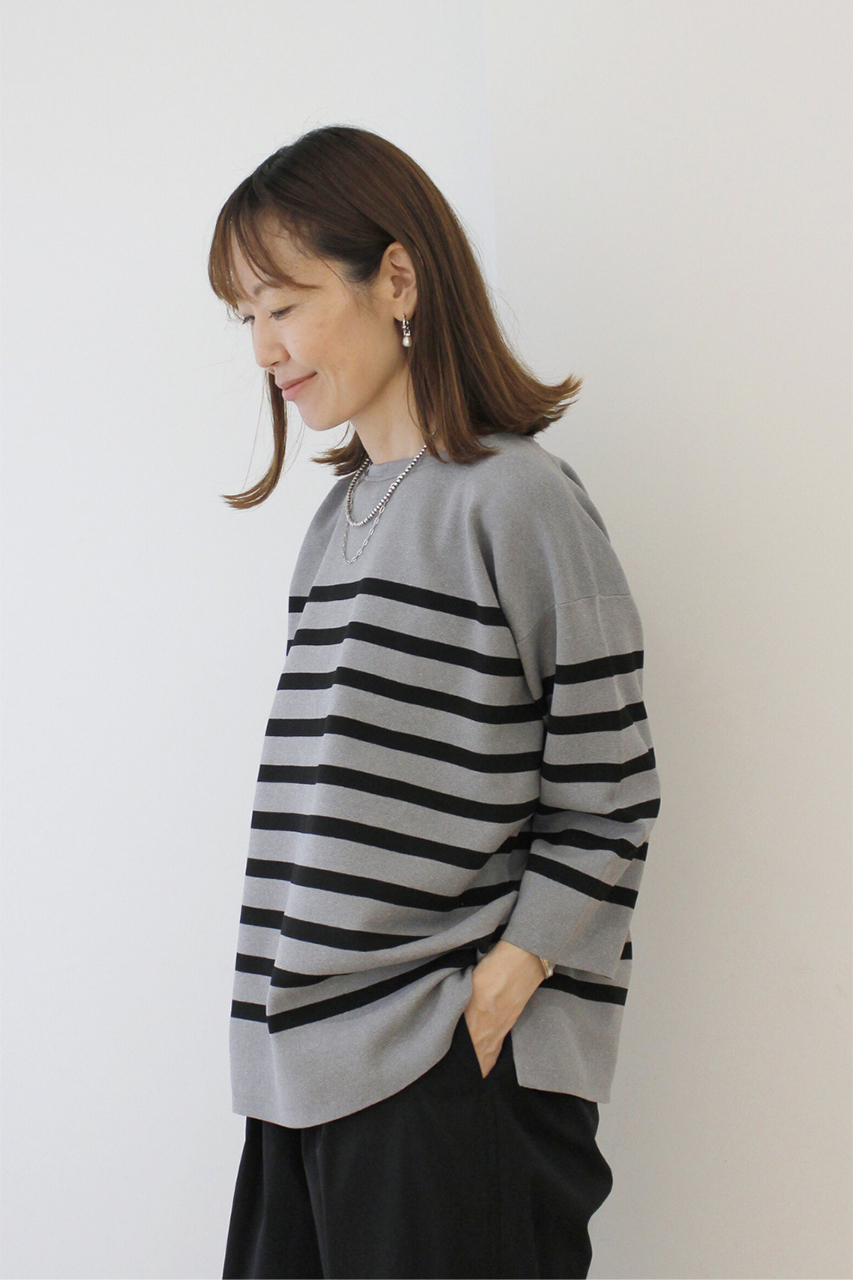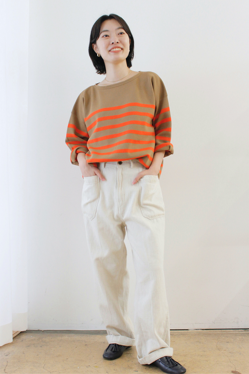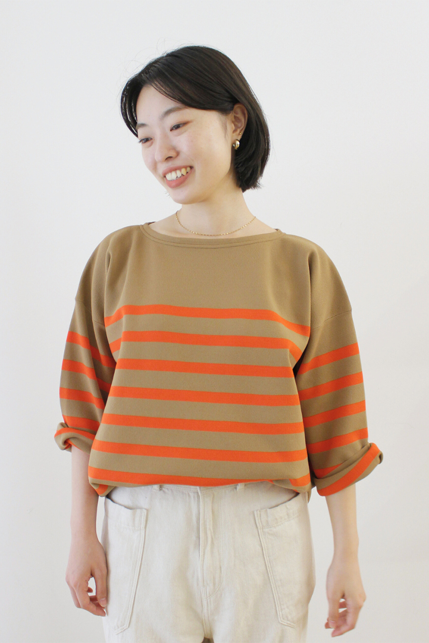 「レリル」では新鮮味のあるキャメル×オレンジ、女性らしさが魅力のスモークピンク、こなれ感が出るマスタード、ブラックのラインでシックに楽しめる杢グレーボーダーをご用意しました。カラーによって雰囲気が変わるから、色選びもお楽しみください。