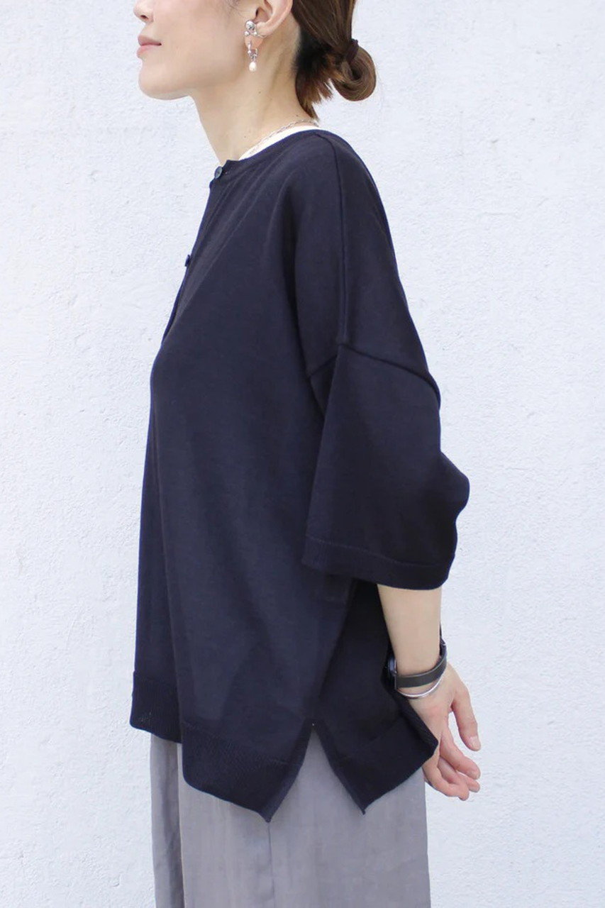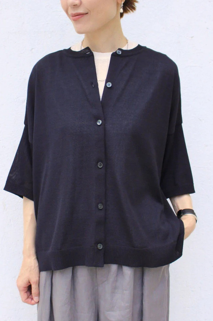 強撚綿ポリエステルで滑らかな肌触りの、ドライ感が心地よい天竺ニットカーディガン。シーズンを跨いで着やすい6分袖です。前後着用可能&程よい生地感なので、カーディガンとしてもプルオーバーとしても気温によって着回せるマストバイアイテム。深みのある秋にぴったりな着やすいカラーリングです。