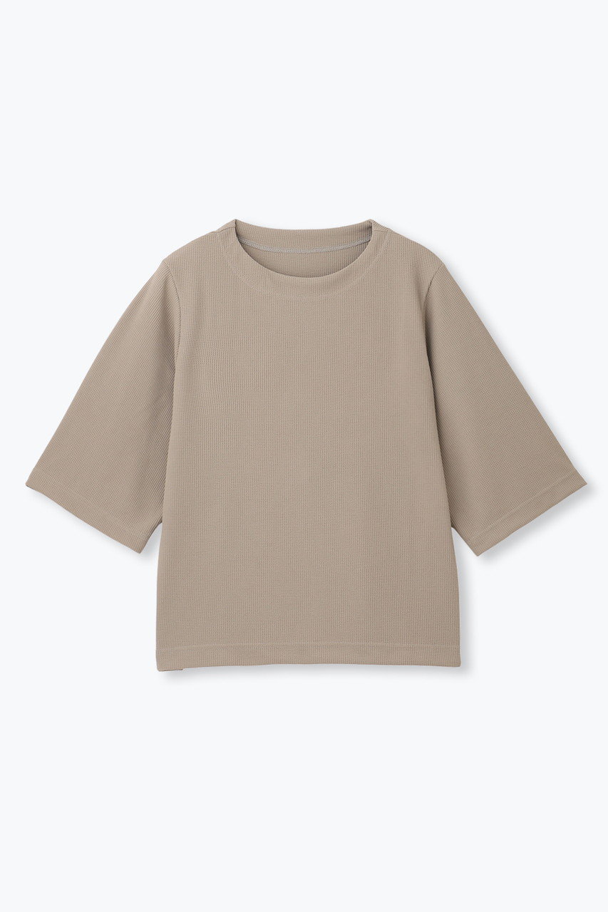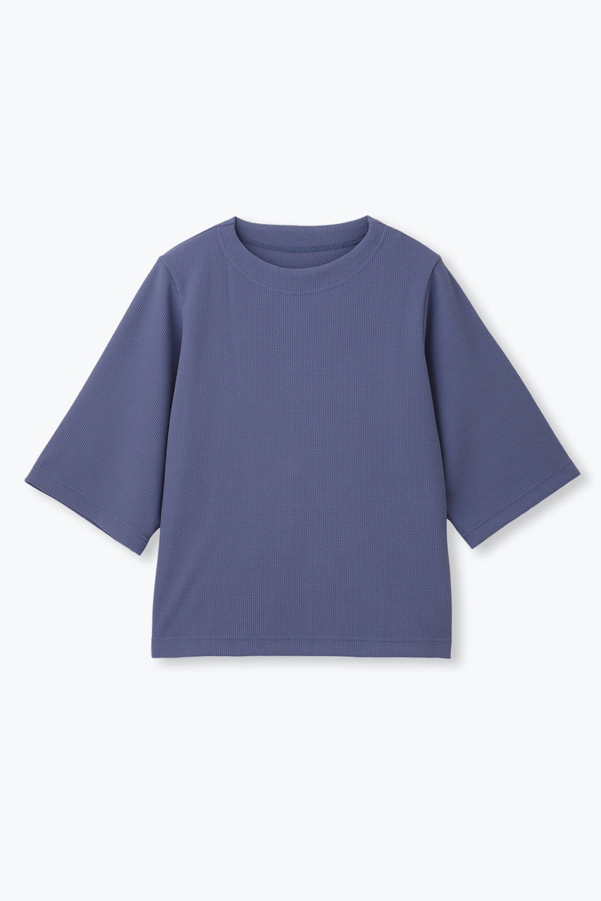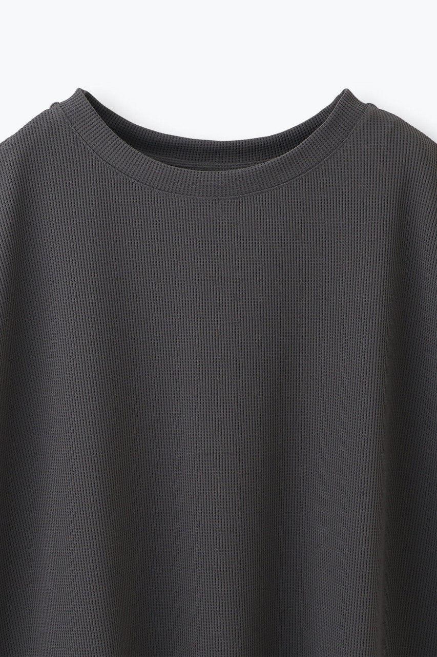 快適な着心地で着回し力が高いワッフルTシャツは、カーキ、ブルー、チャコールグレーをチョイスすると秋のムードを感じられます。熱がこもらないのでこれからの季節、ジャケットや羽織りのインナーとしてもおすすめ。
