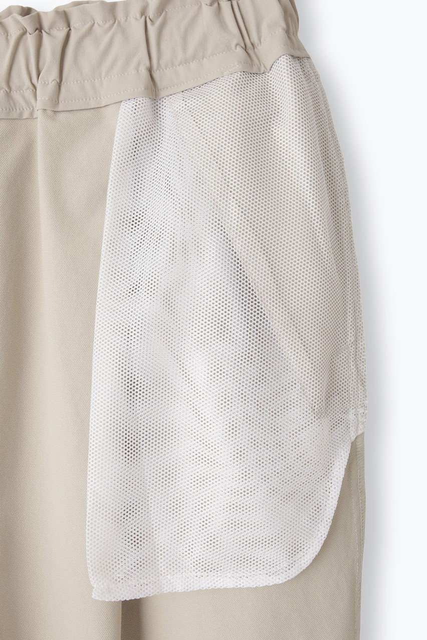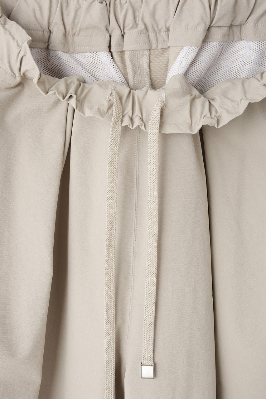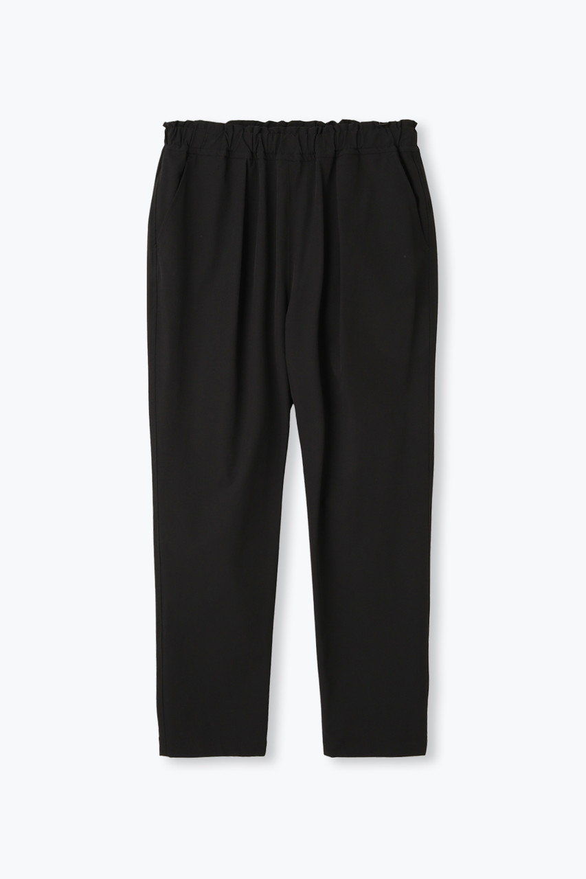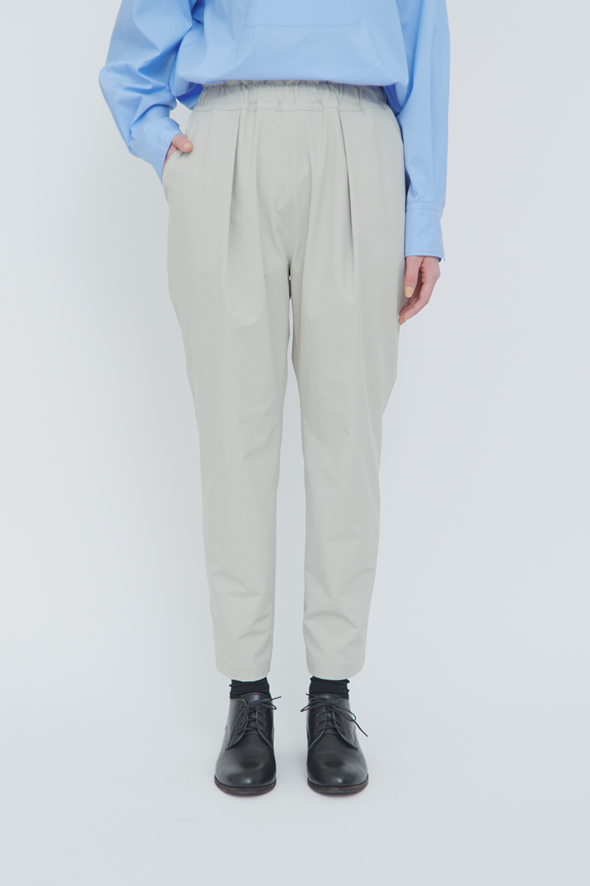 次はパンツをご紹介。シルエット美が魅力の人気のタックテーパードシルエットに、ソフトシェル素材を用いてアップデートしました。フロントタックを入れることですっきりとした見ためながらも、腰から太ももまでに生まれるゆとりがリラクシーなはき心地を感じさせてくれます。ウエストの内側にはドローコードを入れて、サイズ調整も可能。スウェットパンツの様な感覚で綺麗めパンツをお楽しみください