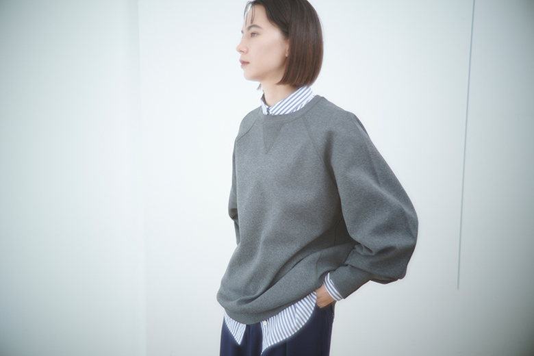 定番のハイテクニットで仕立てたスウェットは、機能性だけでなくビンテージライクなディテールが光る本格派の一着。