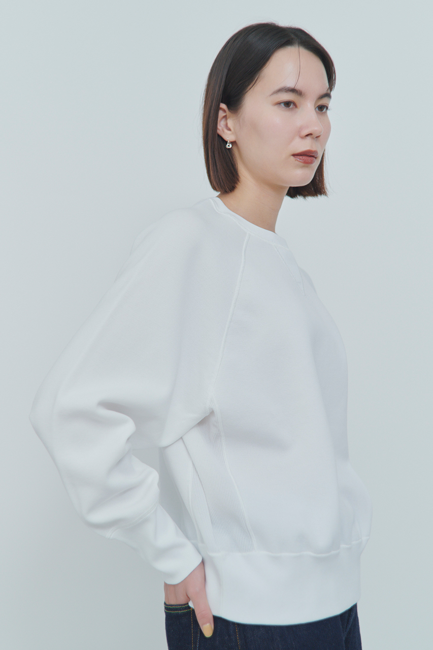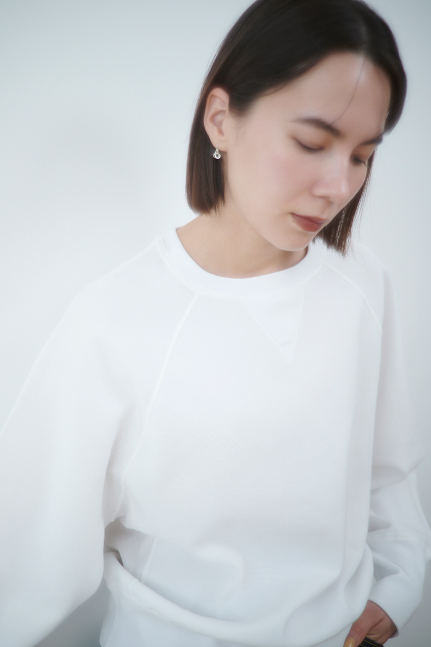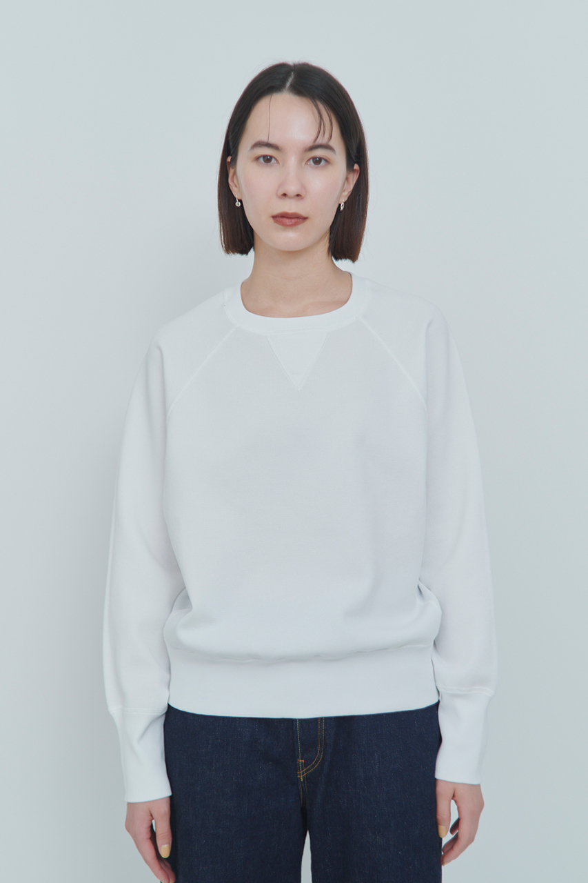 可動域が広く動きやすさを追求したラグランスリーブ、型崩れを防ぐためのサイドリブ、ネックラインの伸びを防止する2枚重になった三角のガゼット、ディテールそれぞれに抜かりない拘りが詰まっています。