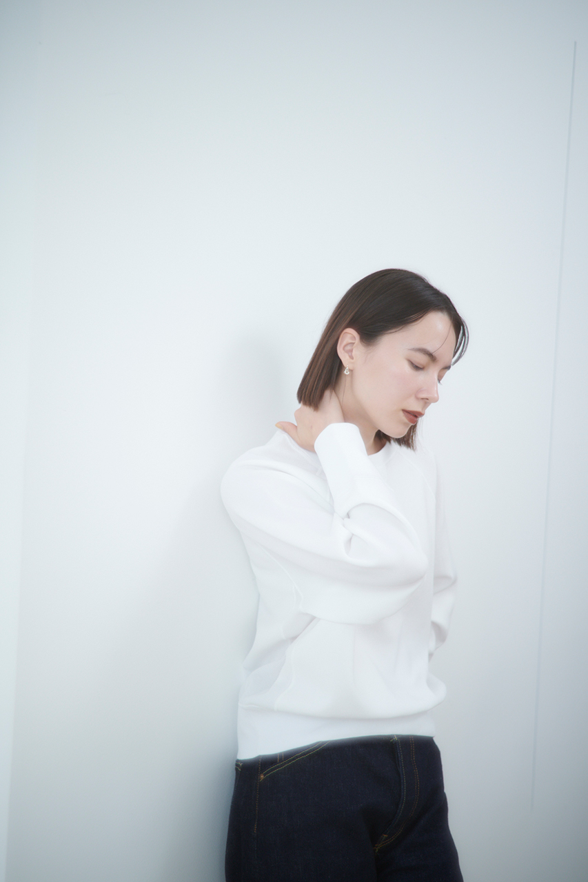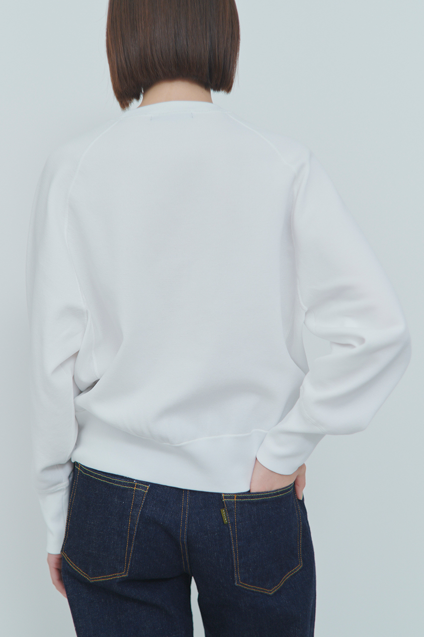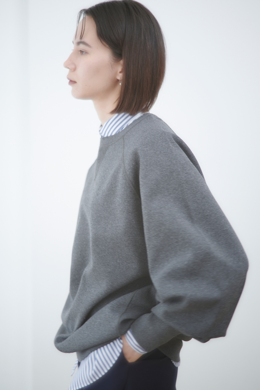 可動域が広く動きやすさを追求したラグランスリーブ、型崩れを防ぐためのサイドリブ、ネックラインの伸びを防止する2枚重になった三角のガゼット、ディテールそれぞれに抜かりない拘りが詰まっています。
