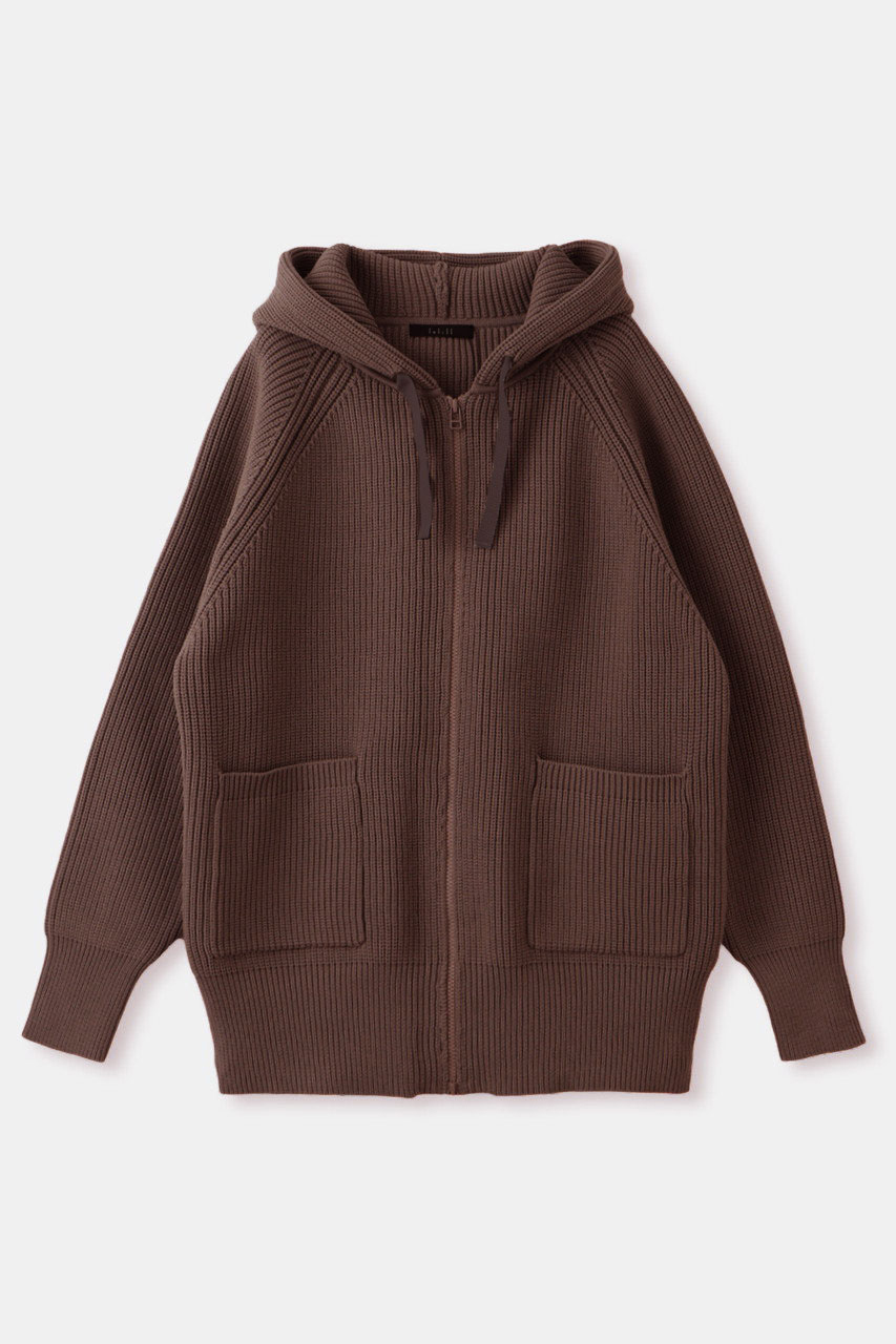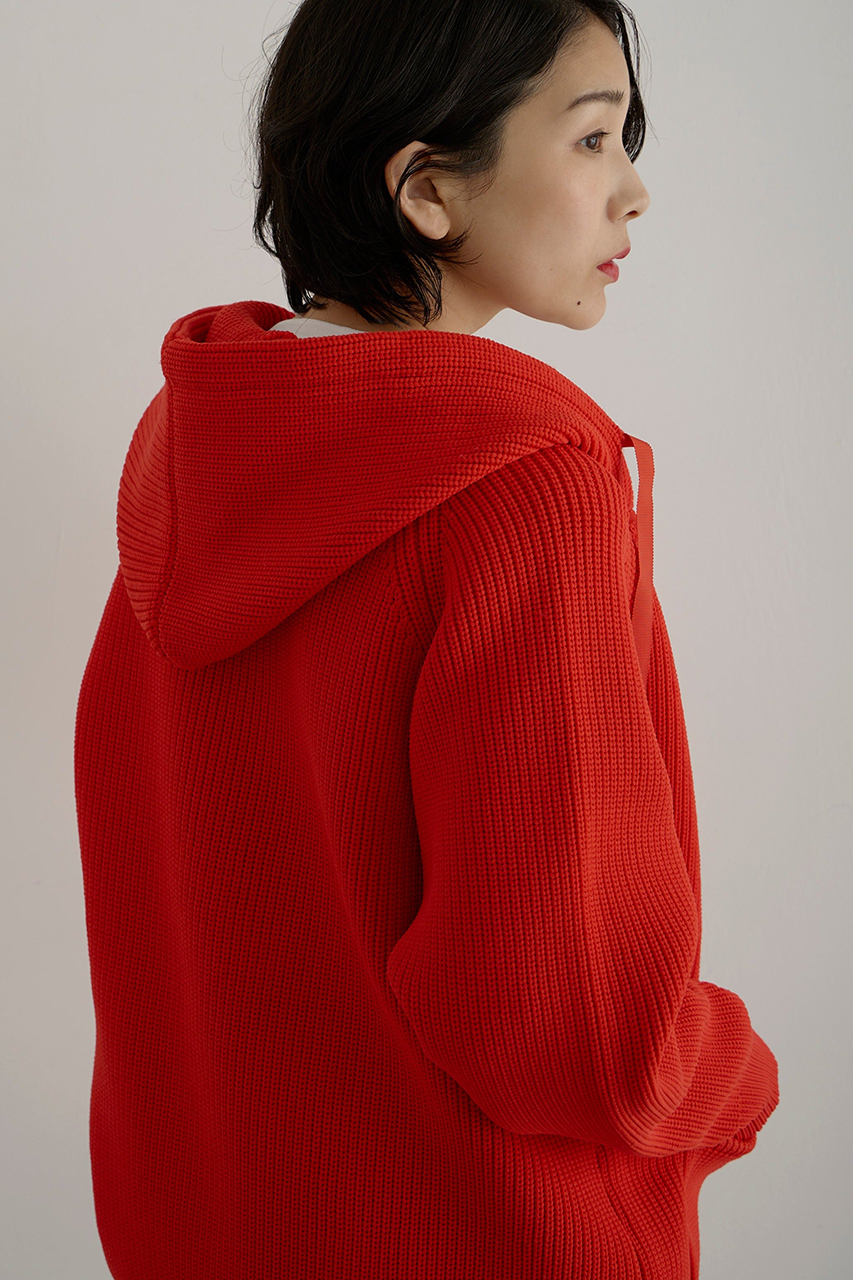 別名「リブ編み」とも呼ばれ、伸縮性のあるニットの代表的な編み方のひとつとなっています。表目と裏目とを交互に編むことで、凹凸ができるのが何よりの特徴。そんなニュアンスのある存在感の高い生地で、身体を包み込んでくれるような畦フーディーを作りました。「レリル」のハイテク機能も蓄えた名品の一つです。