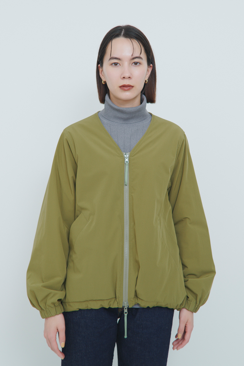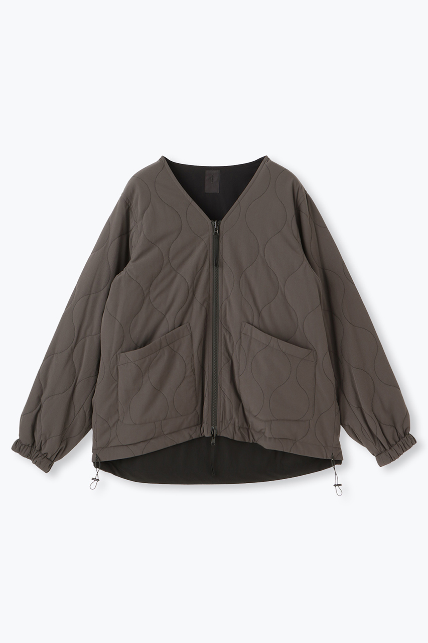 デザインは、すっきりとしたVネックなのでスタイリングしやすくブルゾンとしても重宝します。またリバーシブル仕様になっており、カーキにはカーキ×ベージュ、ブラックにはブラック×チャコールグレーのライナーが付きます。