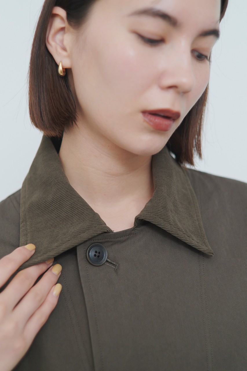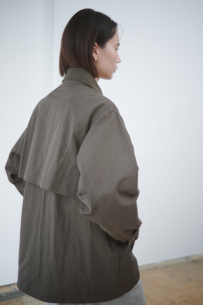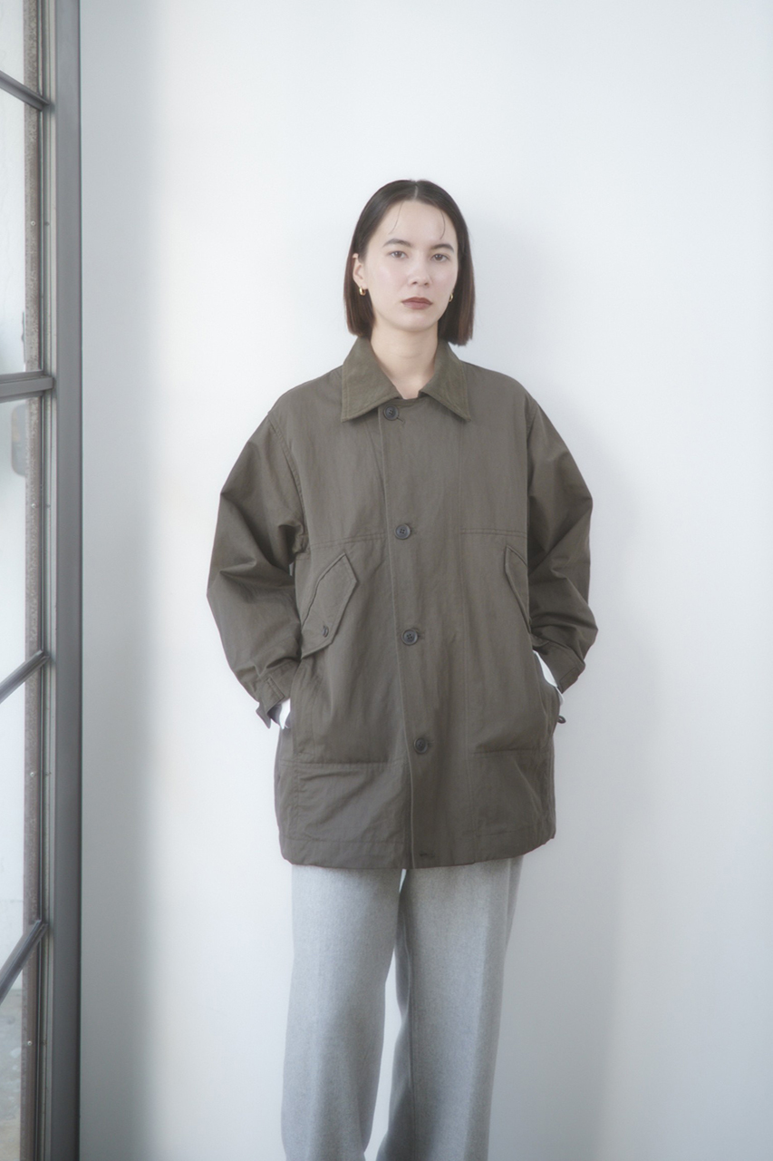 より本格的なニュアンスを感じられるよう、オイルドさを感じられるコットンベースのハードツイルで作りました。実際にオイルは使用していないので、手入れは簡単に家庭洗濯も可能です。