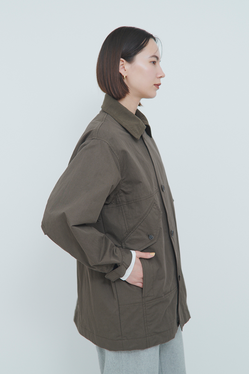腕が上がりやすい肩周りのパターン設計で、日常での着やすさを考慮したシルエット。手を温められるハンドウォーマーも付いており、利便性と暖かさを叶えてくれる細かいデティールもポイントです。