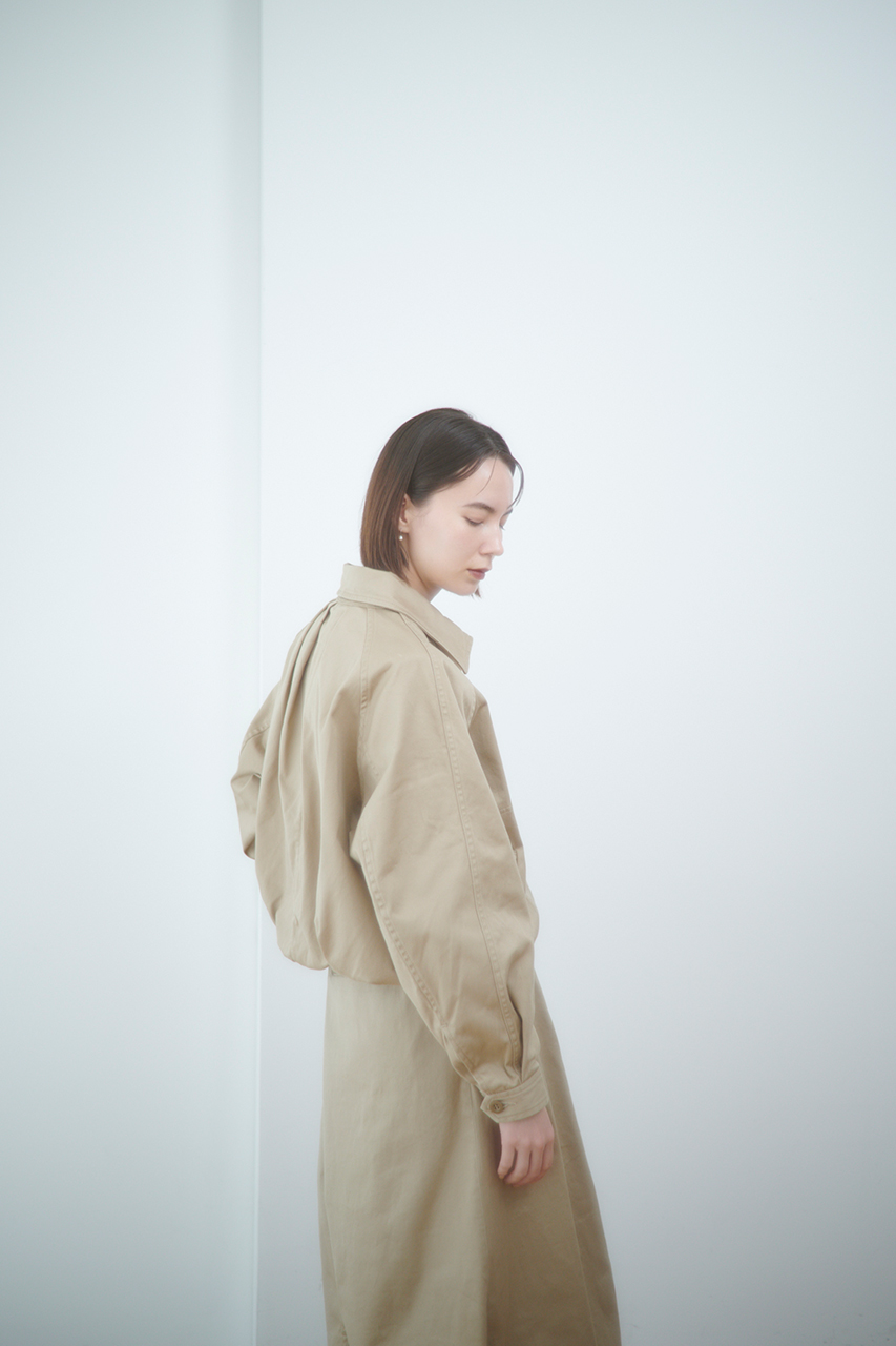 深いタックを入れて作る立体的なバックスタイルは、窮屈さを感じさせない機能性もありつつ洗練された印象に。