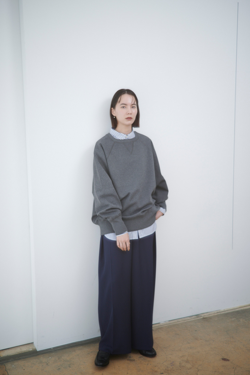 ピリング(毛玉)にも強く、お洗濯可能で超速乾、ケアの簡単さが特徴です。スウェットを象徴するような三角の"ガゼット"は、2枚重ねにしてネックラインの伸びを防止します。また脇下部分は洗濯や着用による伸びを吸収するリブ編みに。ビンテージライクで本格仕様なデザイン性だけでなく、型崩れせず長く愛用できるよう細部にまで「レリル」のこだわりを入れています。