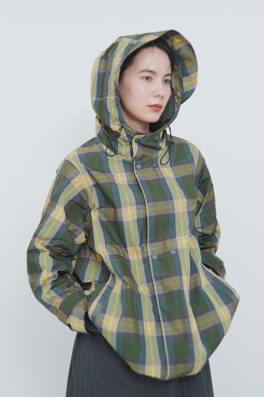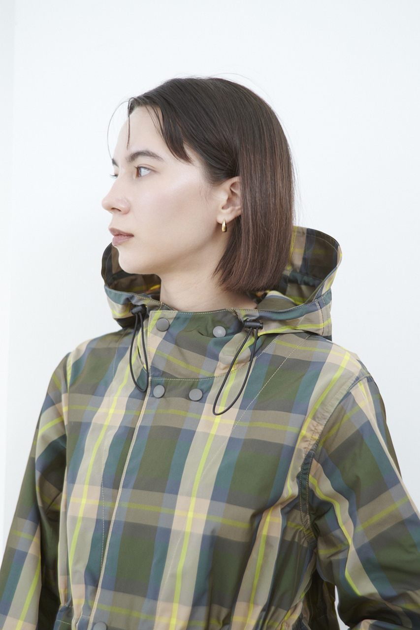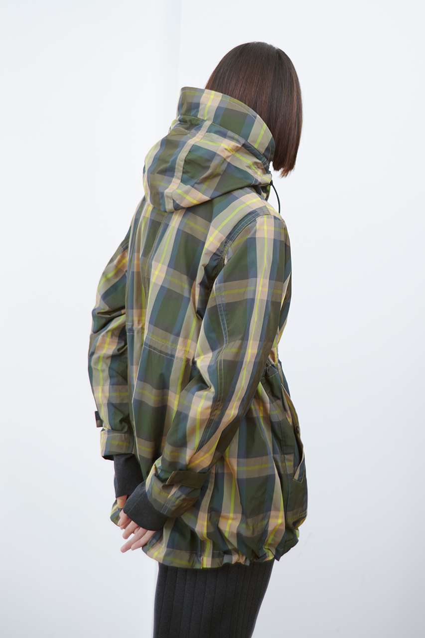軽くて暖かい機能綿を使用した基本となるジレフーディーに、無地とチェック柄両面で着用可能なリバーシブルブルゾンがドッキングされてます。