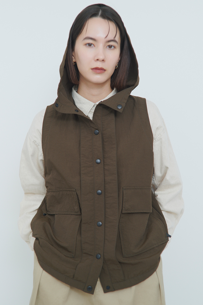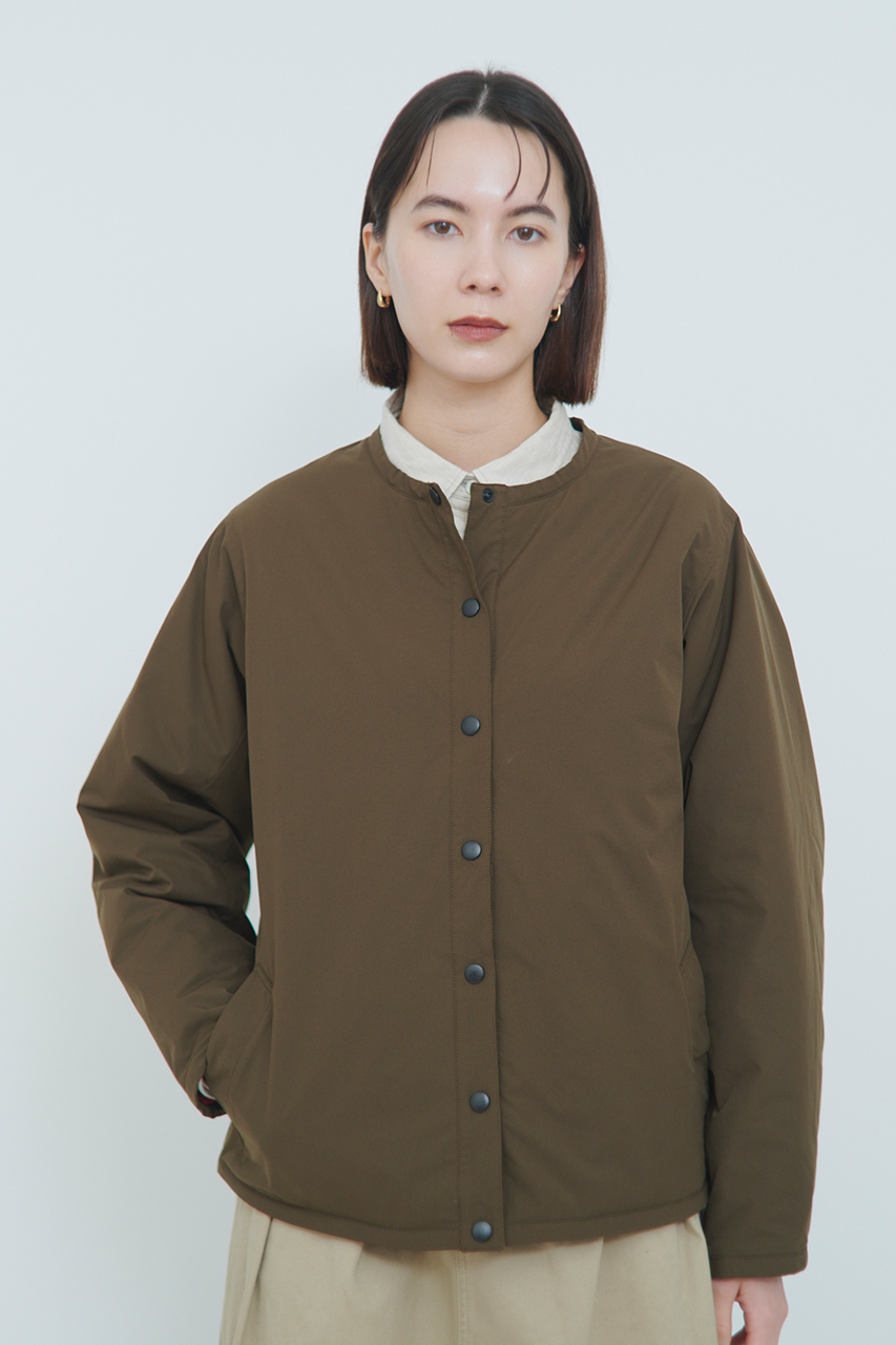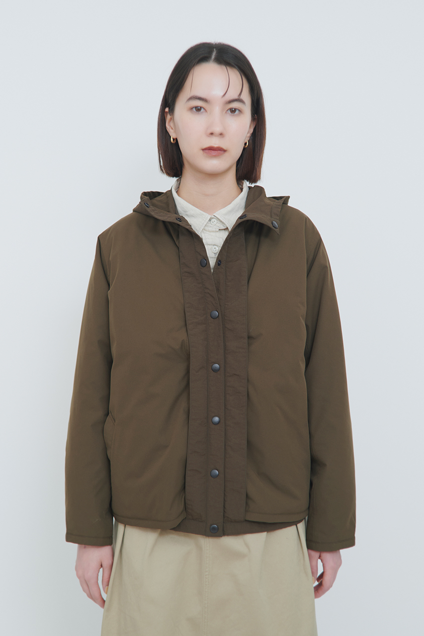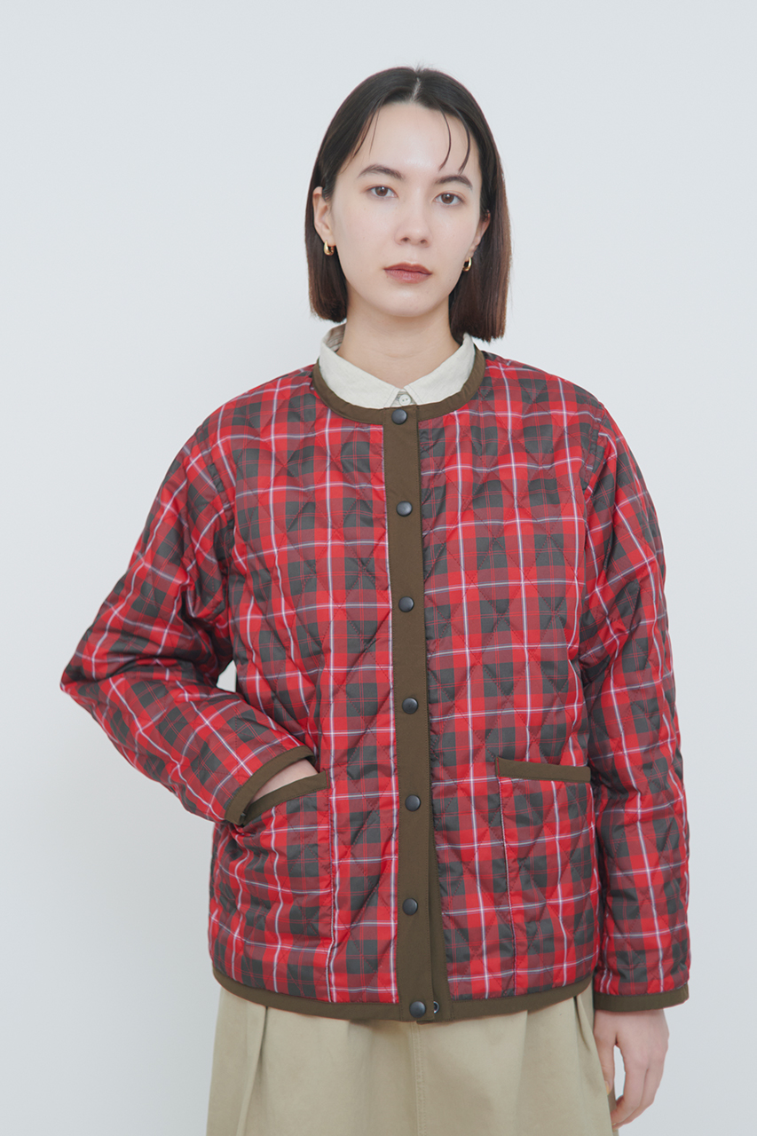 軽くて暖かい機能綿を使用した基本となるジレフーディーに、無地とチェック柄両面で着用可能なリバーシブルブルゾンがドッキングされてます。