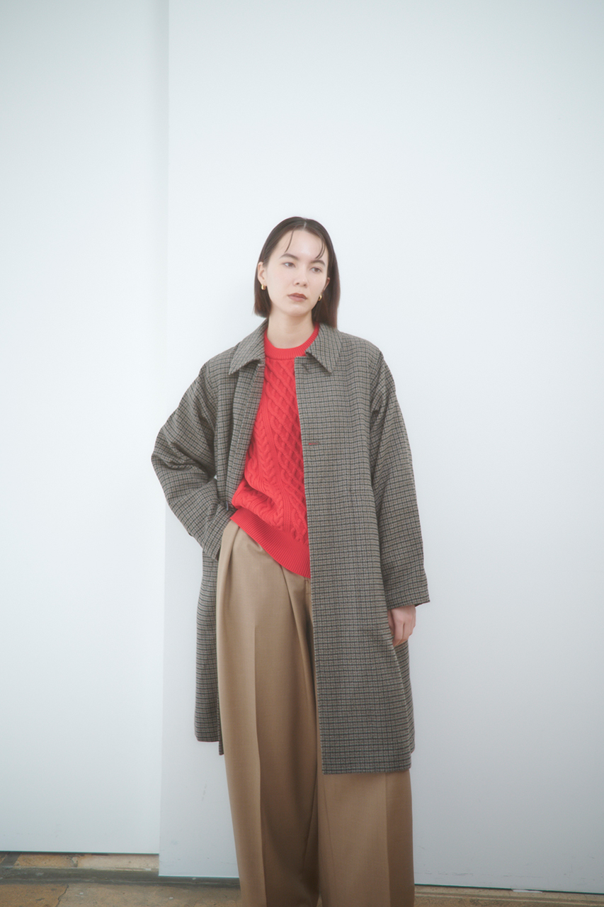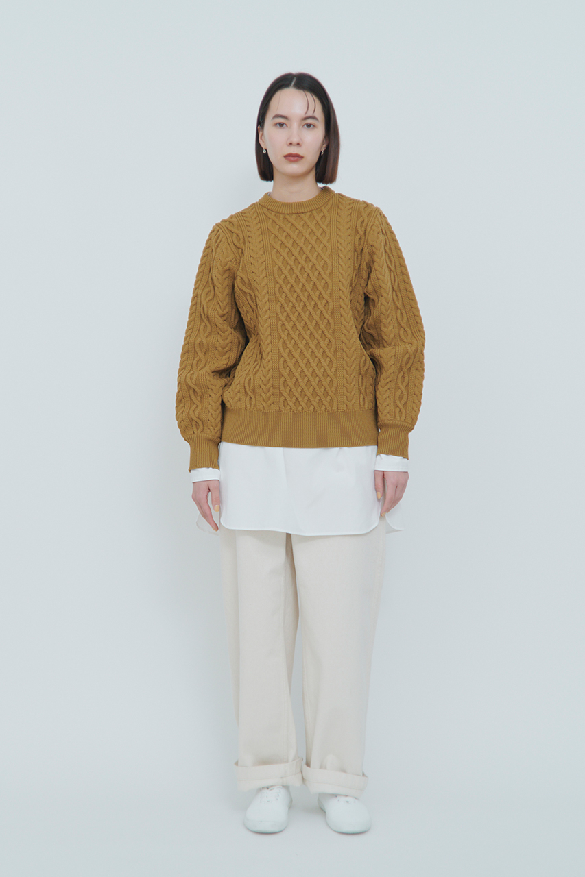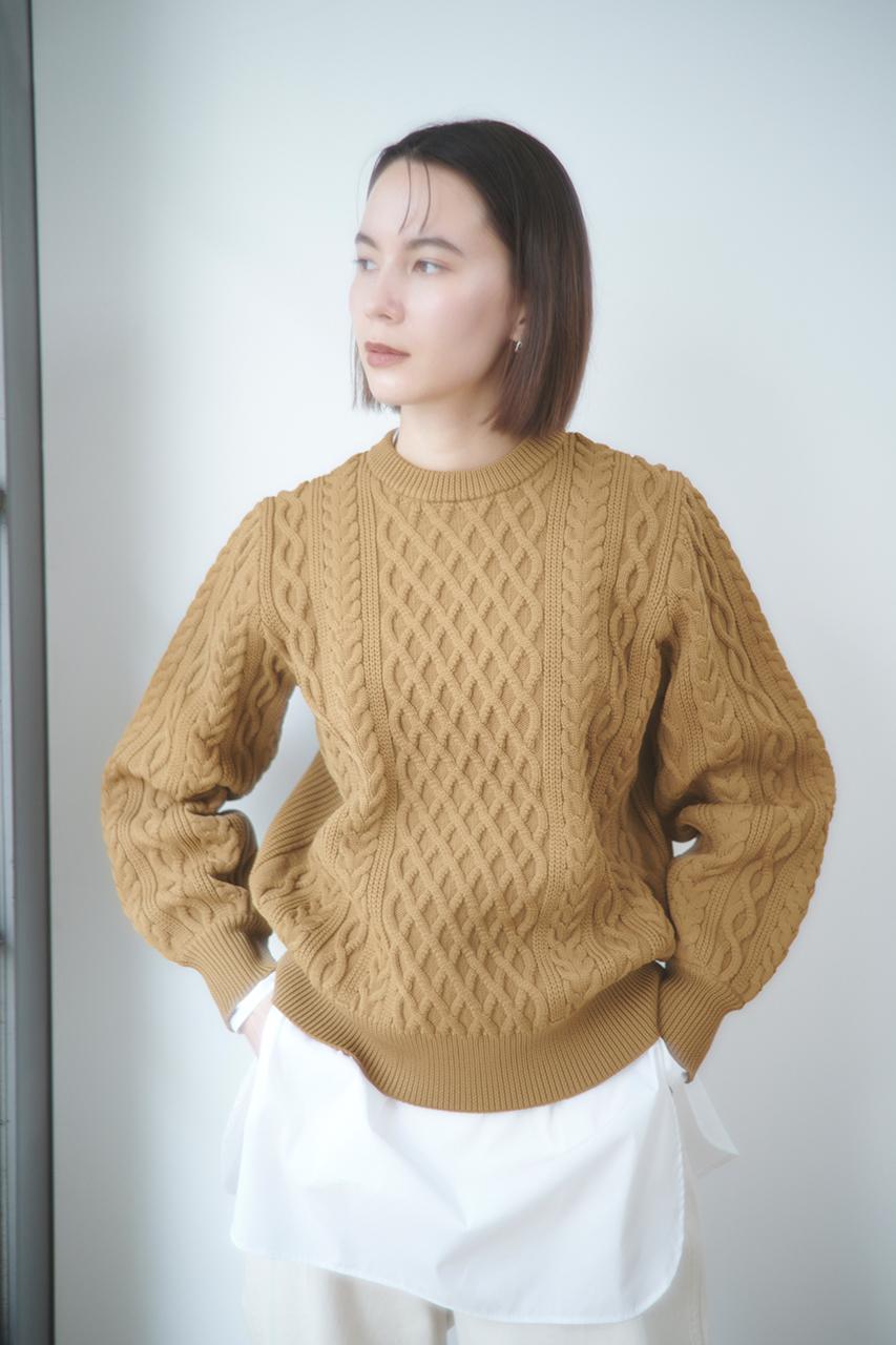 ウールのアランニットは素敵だけど着心地の重さや、型崩れのしやすいという懸念点を“ハイテクニット”を用いて改善し、よりデイリーに楽しめるアランニットが完成しました。