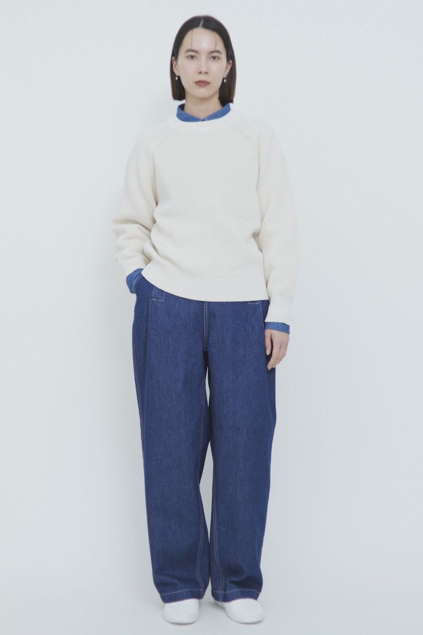 今回は13オンスの本格的な右綾デニムを採用しているのでエイジングが楽しい1本に。見た目より太すぎず、はいた時の綺麗なラインがより上質さを感じていただけます。