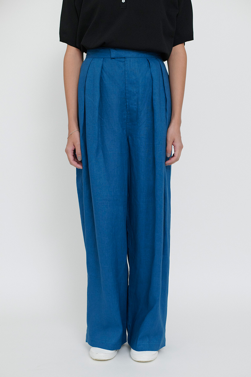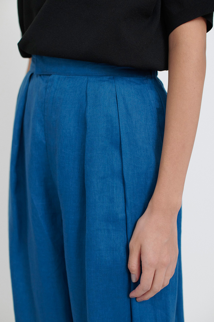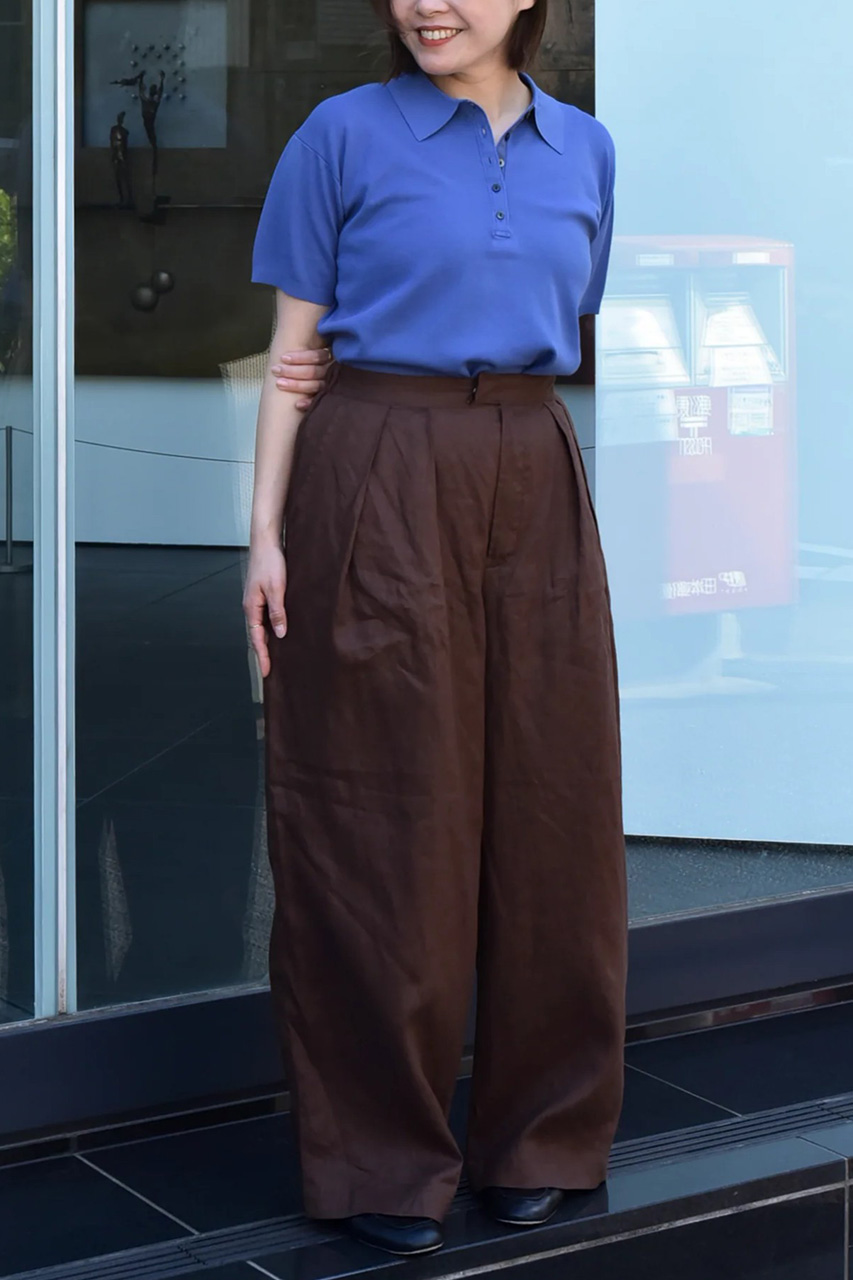 最も太いワイドパンツですが、リネン素材の落ち感でシルエットが程よく収まりお仕事でも使いやすい、きれいめデザインに仕上げています。