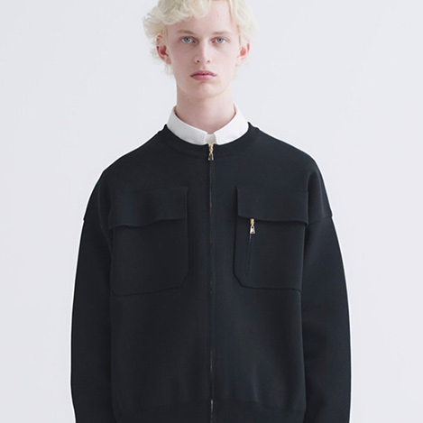 【UNISEX】Big Pocket ジップアッ プカラーレス ニットジャケット