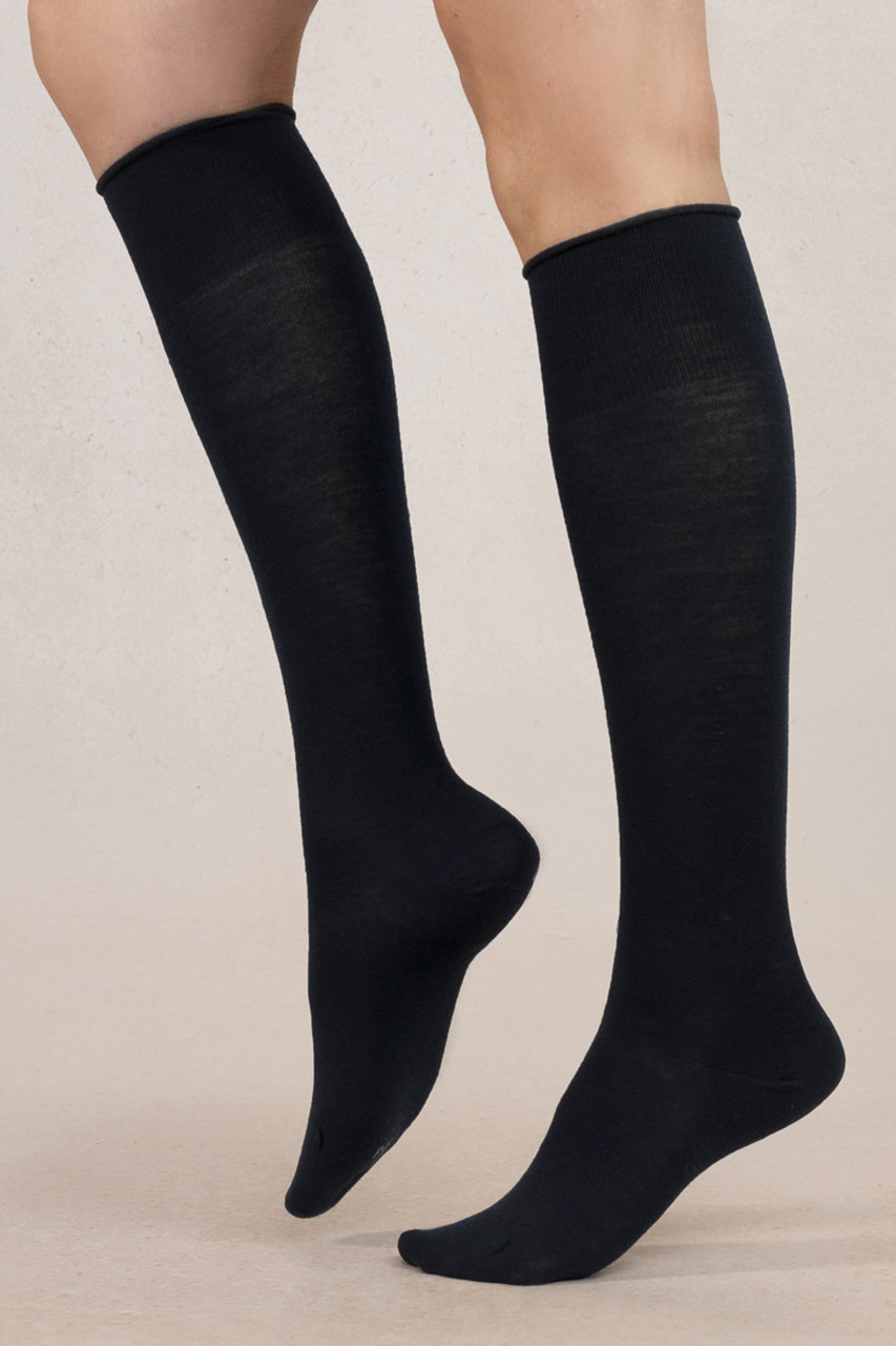 6970 COTTON INSIDE ソリッドファインウールニーハイソックス