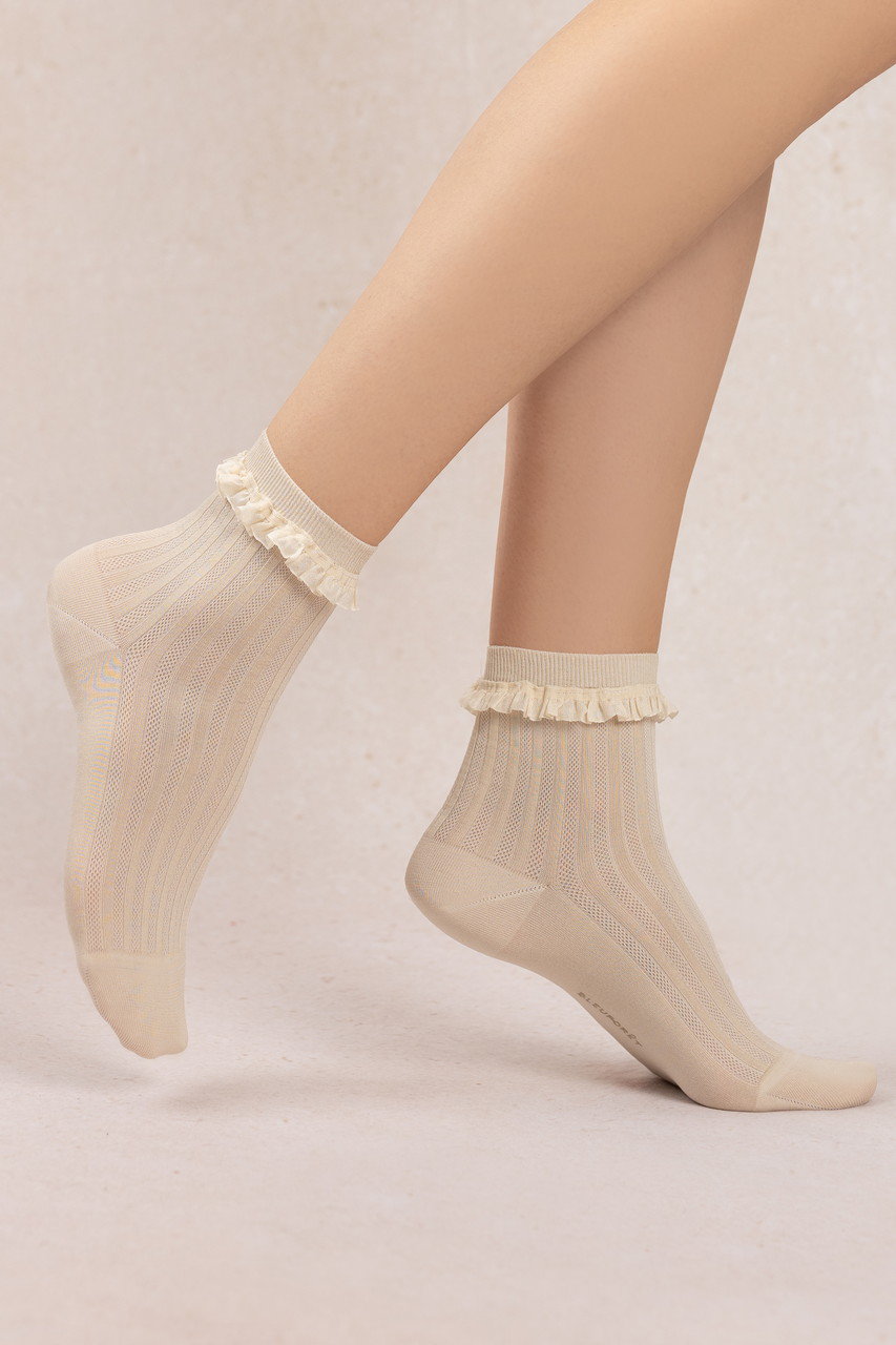 BLEUFORET 6597 マーセライズドコットン フリルアンクルソックス ¥4,400
