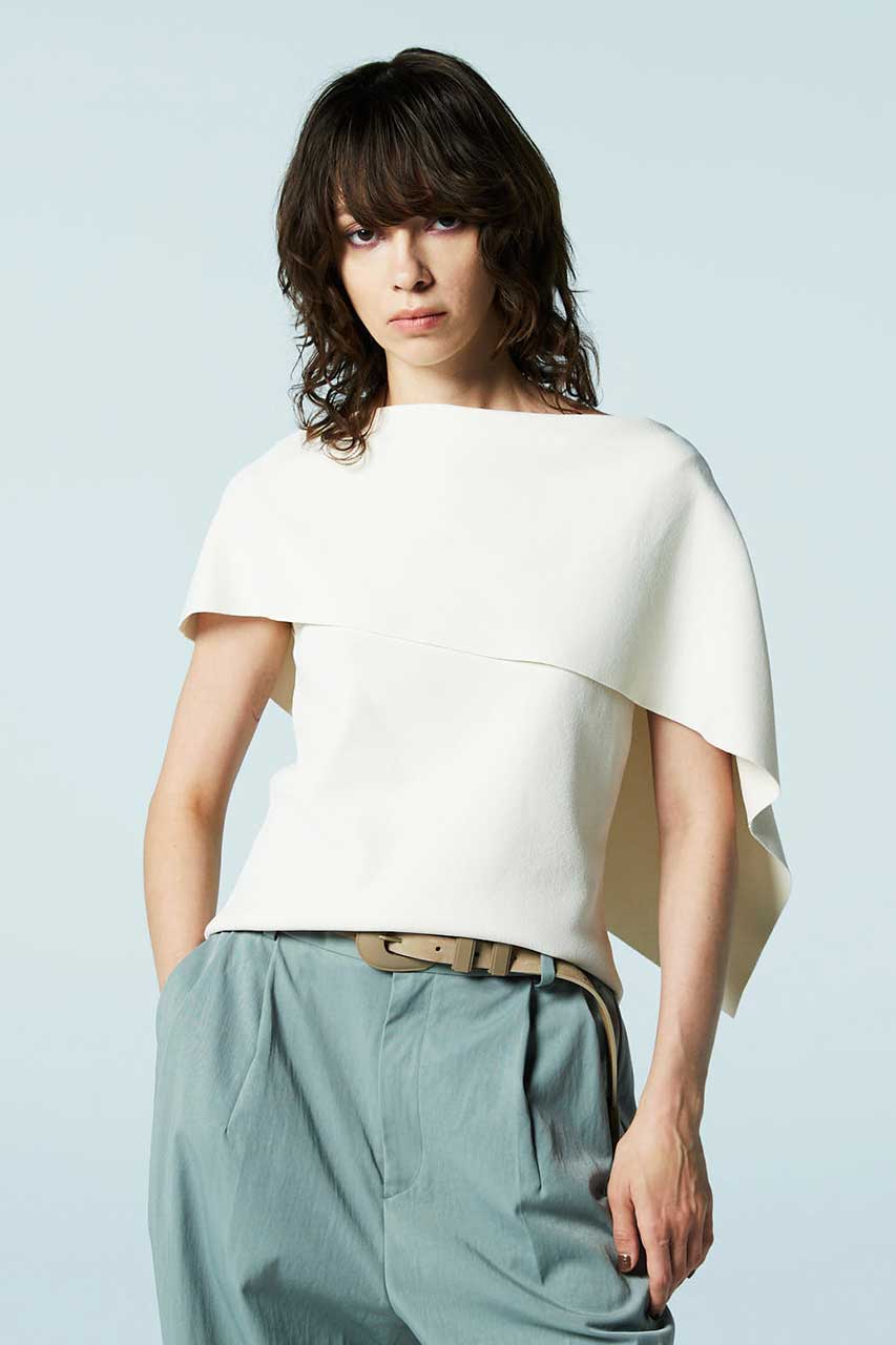 プリントスカートを引き立てて、着回し力も高いトップスをピックアップ。ケーププルオーバーは独特のドレープが優しく体を包み、女性らしいシルエットに。新色2色を追加いたしました。スリーブレスのジャージートップスは、ステッチをあえてなくすことで上品に。肩部分にはアンダーウェア用のストラップ留めを施すなど細部まで配慮しています。コンパクトTシャツやリブのカットソーはタイトなフォルムと上質な素材でカジュアルながら品良くまとまるのが魅力です。