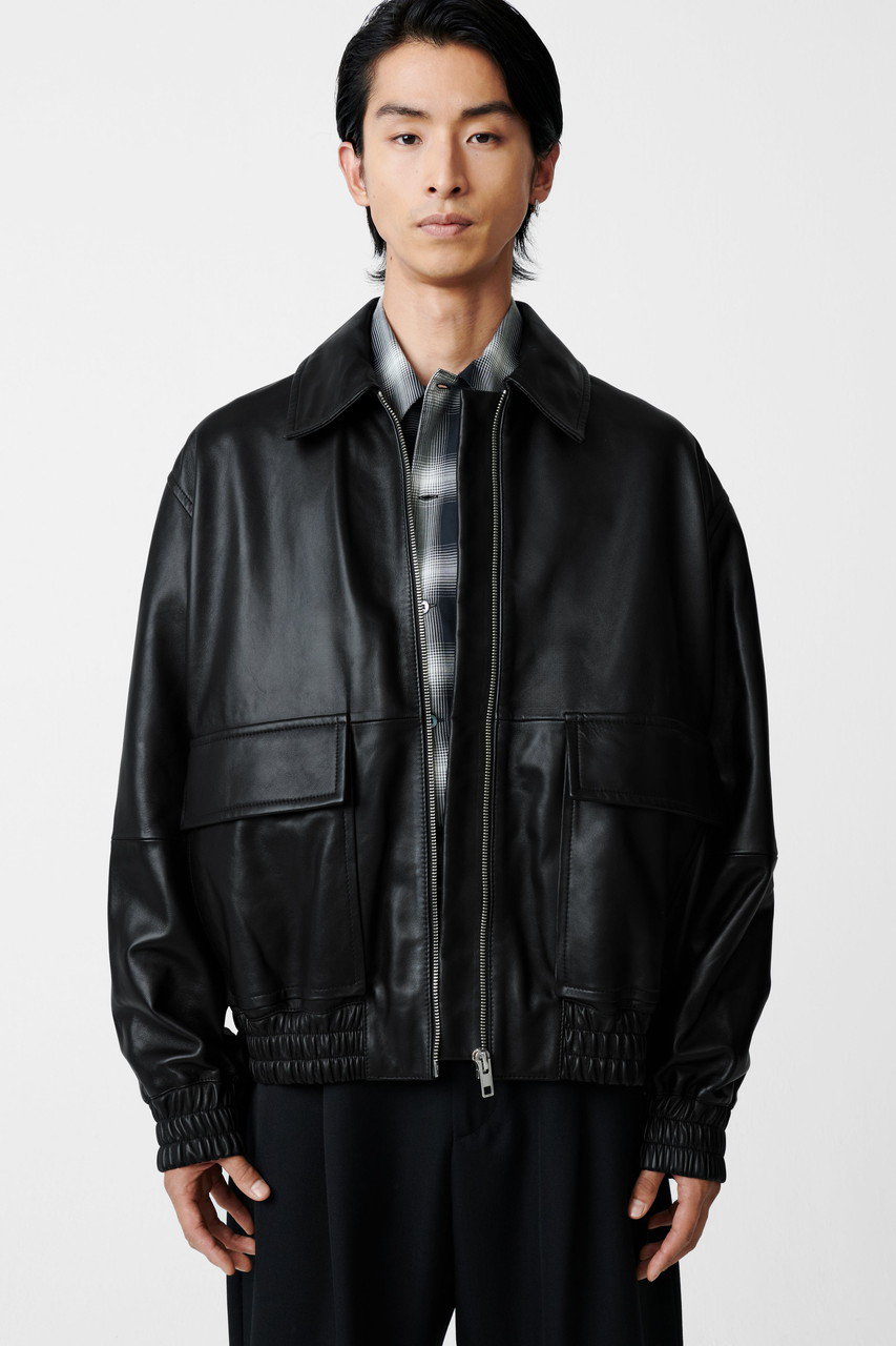 なめらかで上品な風合いと、着るほどに味わいが増していく柔らかなレザー素材で仕上げたボンバージャケット。オーバーサイズと大きめの立体的なポケットが旬ムードを高め、羽織るだけで装いを格上げしてくれそう。デニムやチノパンでとラフに着こなしても、トラウザーズでシックにまとめても、洗練された大人ルックが完成。