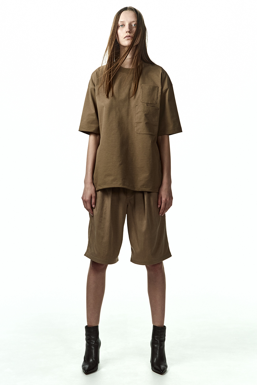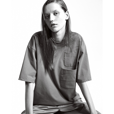 コットンライクな度詰めのしっかりとした素材感のポリエステル糸を使用し編み立てているため、ハリがありながらも着心地の良い仕上がり。胸にはフィッシングディテールのなごりである大小異なるポケットを配しています。
