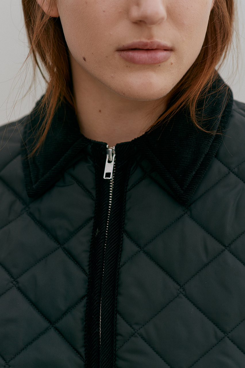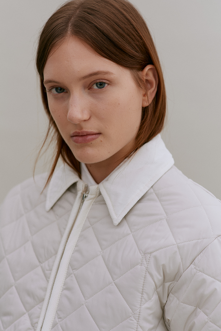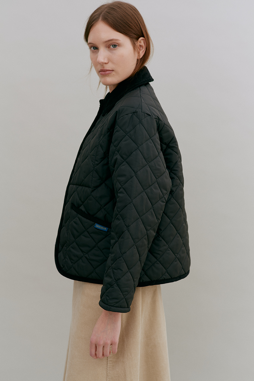 クラシックな2インチダイヤモンドキルティングを、クロップド丈のボクシーシルエットでモダンにアップデート。ダブルジップとパッチポケットがアクセントになり、軽量で保温性に優れた中綿入りでレイヤードも自在。短めの着丈とゆとりのある袖でレイヤリングがしやすく、カジュアルなデニムからフェミニンなスカートまで、幅広いコーディネートにマッチします。