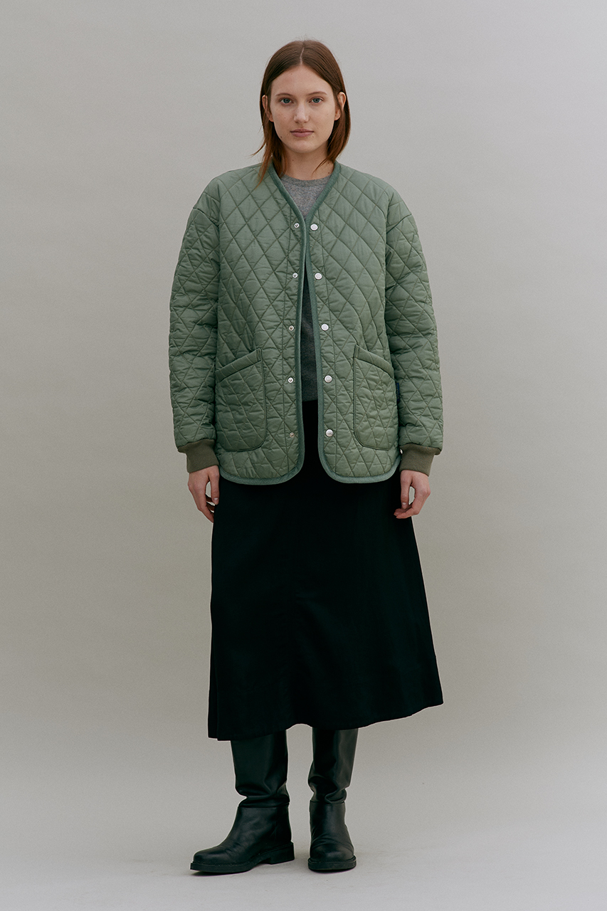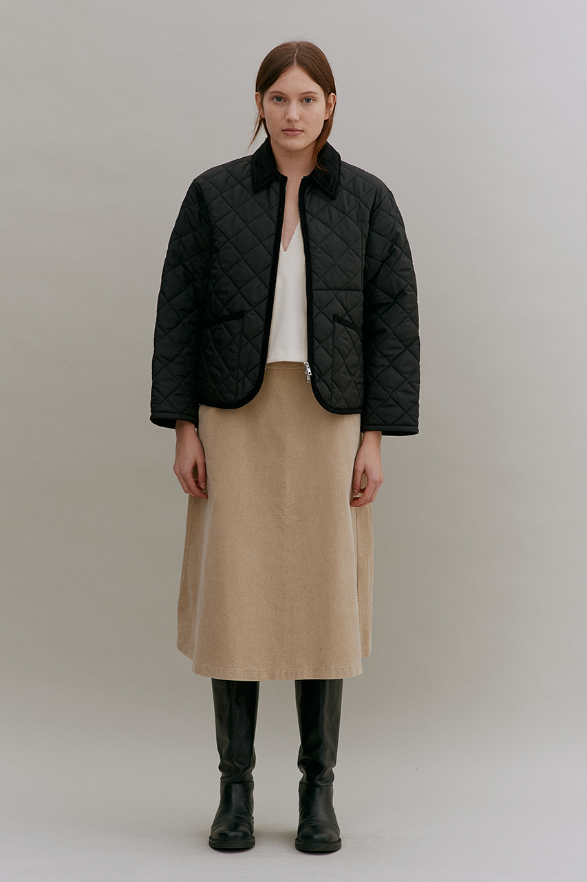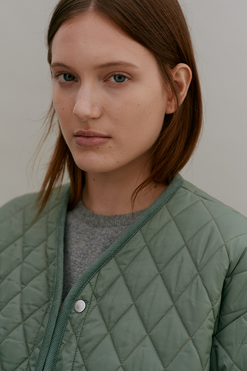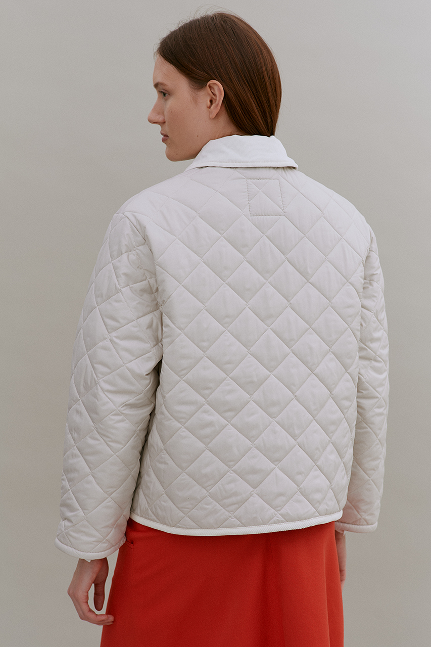 クラシックな2インチダイヤモンドキルティングを、クロップド丈のボクシーシルエットでモダンにアップデート。ダブルジップとパッチポケットがアクセントになり、軽量で保温性に優れた中綿入りでレイヤードも自在。短めの着丈とゆとりのある袖でレイヤリングがしやすく、カジュアルなデニムからフェミニンなスカートまで、幅広いコーディネートにマッチします。