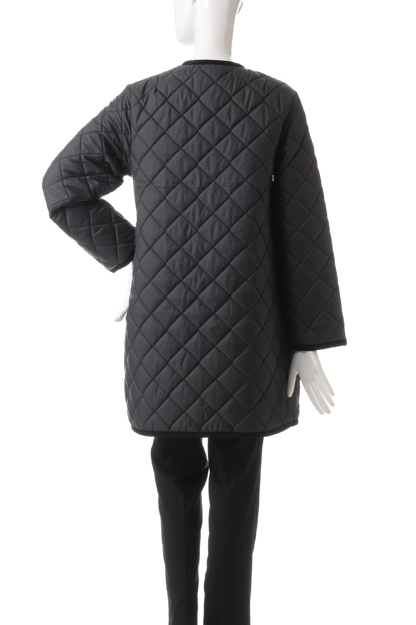 大好評のクルーネックシリーズにコートタイプが仲間入り。通常よりも軽く柔らかいソフト中綿を使用することで、軽く着心地も抜群。コントラストのバインディングがぐっと女性らしさを引き立てて。お尻が隠れる着丈でしっかりと暖かく、裏地を1枚施すことで、より保温性をアップ。オンオフ問わずに秋冬コーディネートを楽しんでいただけること間違いなし。
