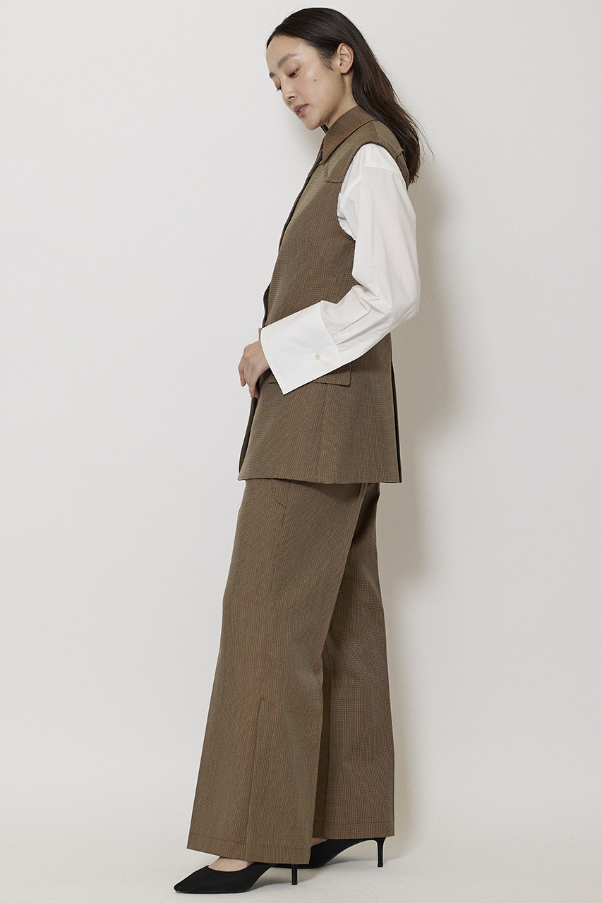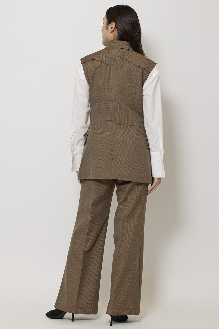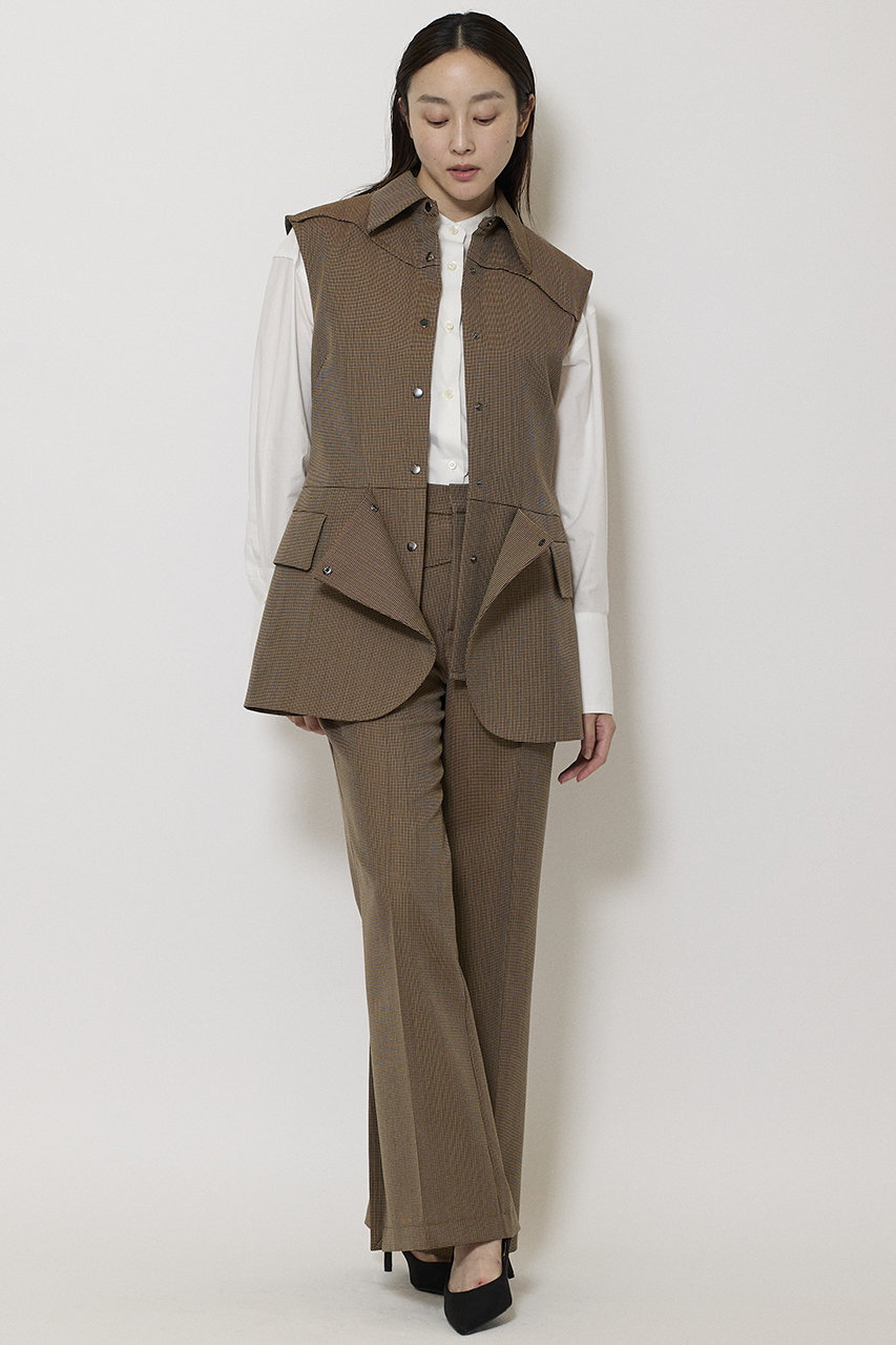 【セットアップ】着回しにも最適!旬なチェックのジレ&パンツ