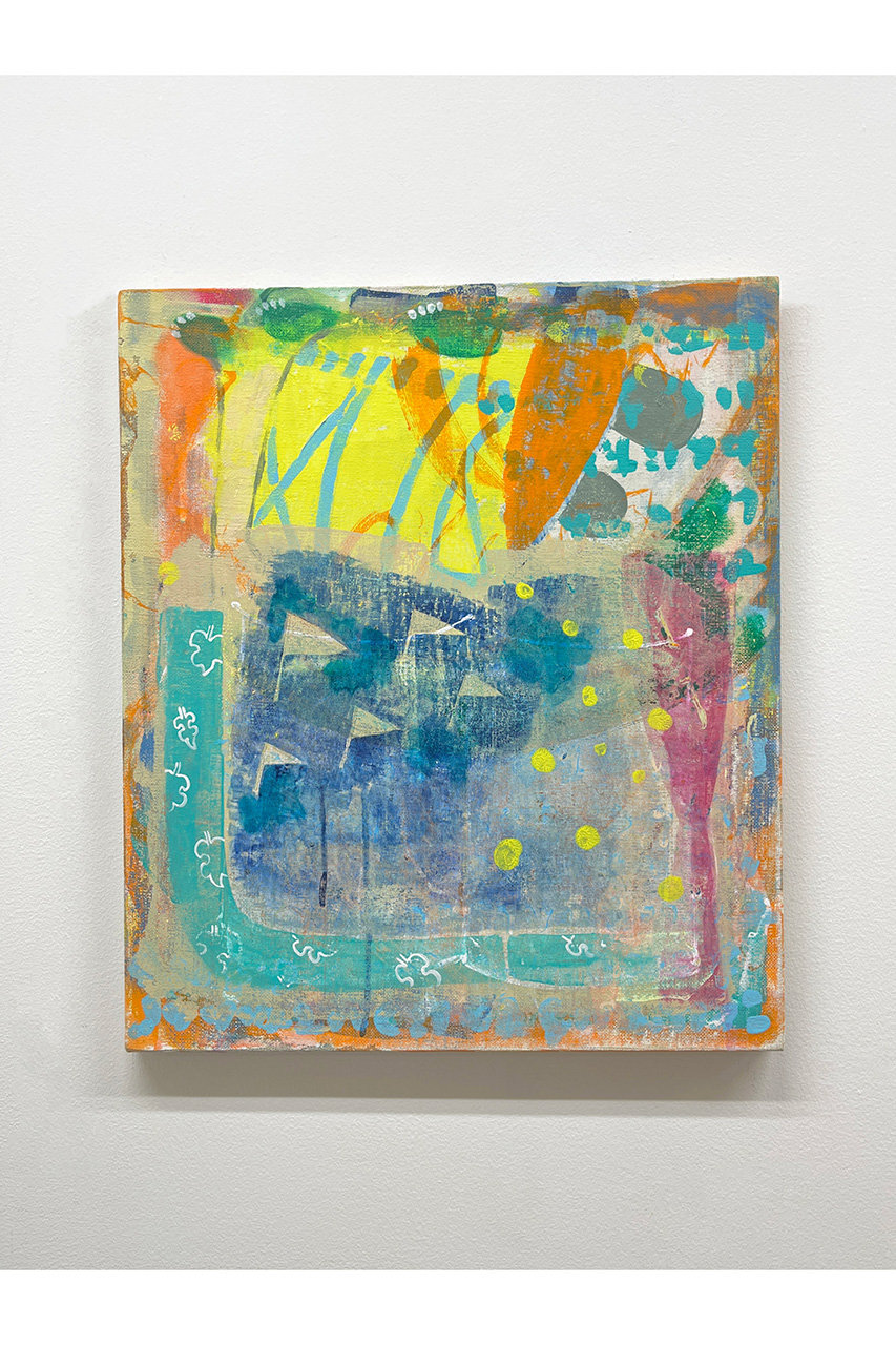 自身の詩や散文、日本の近代文学を起点に、文章の中に立ち現れる情景や文字をモチーフとした絵画を制作している。言語が世界を知覚し変容させる力を持つことに関心を寄せ、言葉に拠りつつも言葉だけでは捉えきれない感覚を絵画として探求している。(川村 摩那)