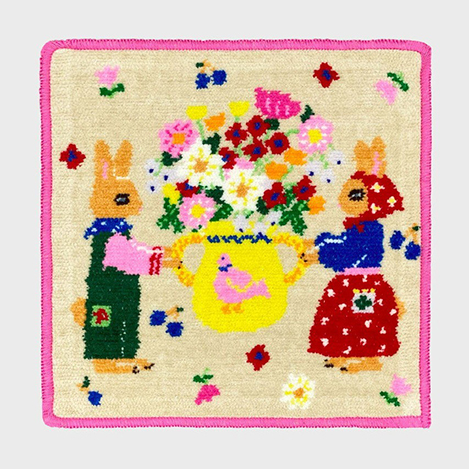 イラストレーター、布川愛子さんが「お花を持って、会いたい人に会いにいこう」をテーマに描き下ろした作品を、シェニール織で再現。柔らかく丈夫で吸水性に優れたシェニール織りは、毛足を丁寧にカットすることで優れた耐久性を実現しました。大切な方へのバースデーや記念日など、ちょっぴりサプライズなギフトにもおすすめです。