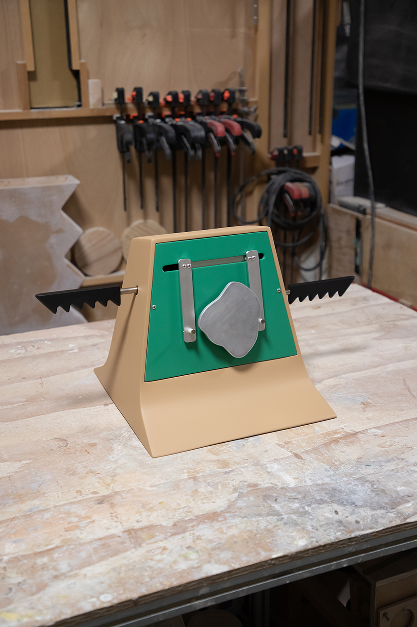 幼児の遊具のようでもあり、スタイリッシュなオブジェのようでもあり、しかし、これは何をする機械なのだろう?「何かの目的や機能のために動いている装置ではないもの、です」と語る小林 椋さん。では何なのだろう……