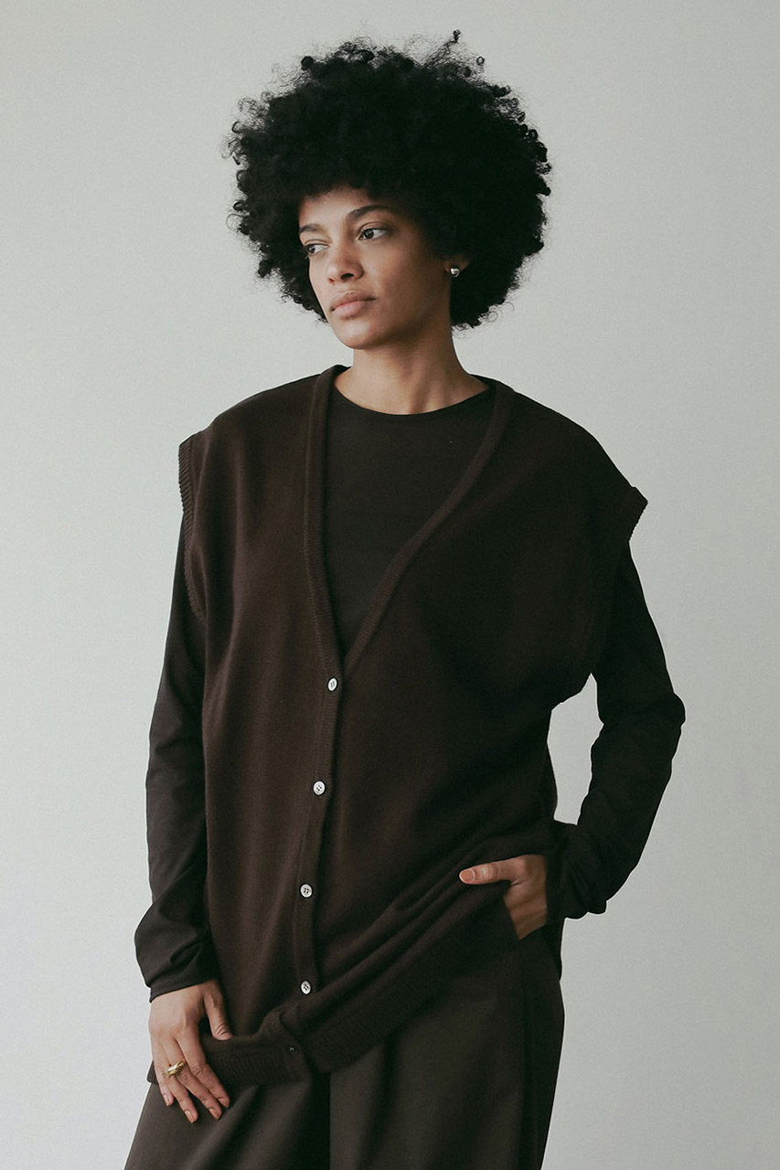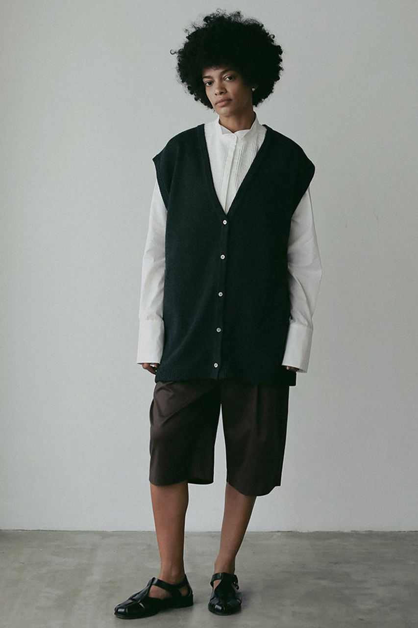 季節の変わり目に重宝するベストは、素材の質感がそのまま着こなしの格を高めてくれる存在です。