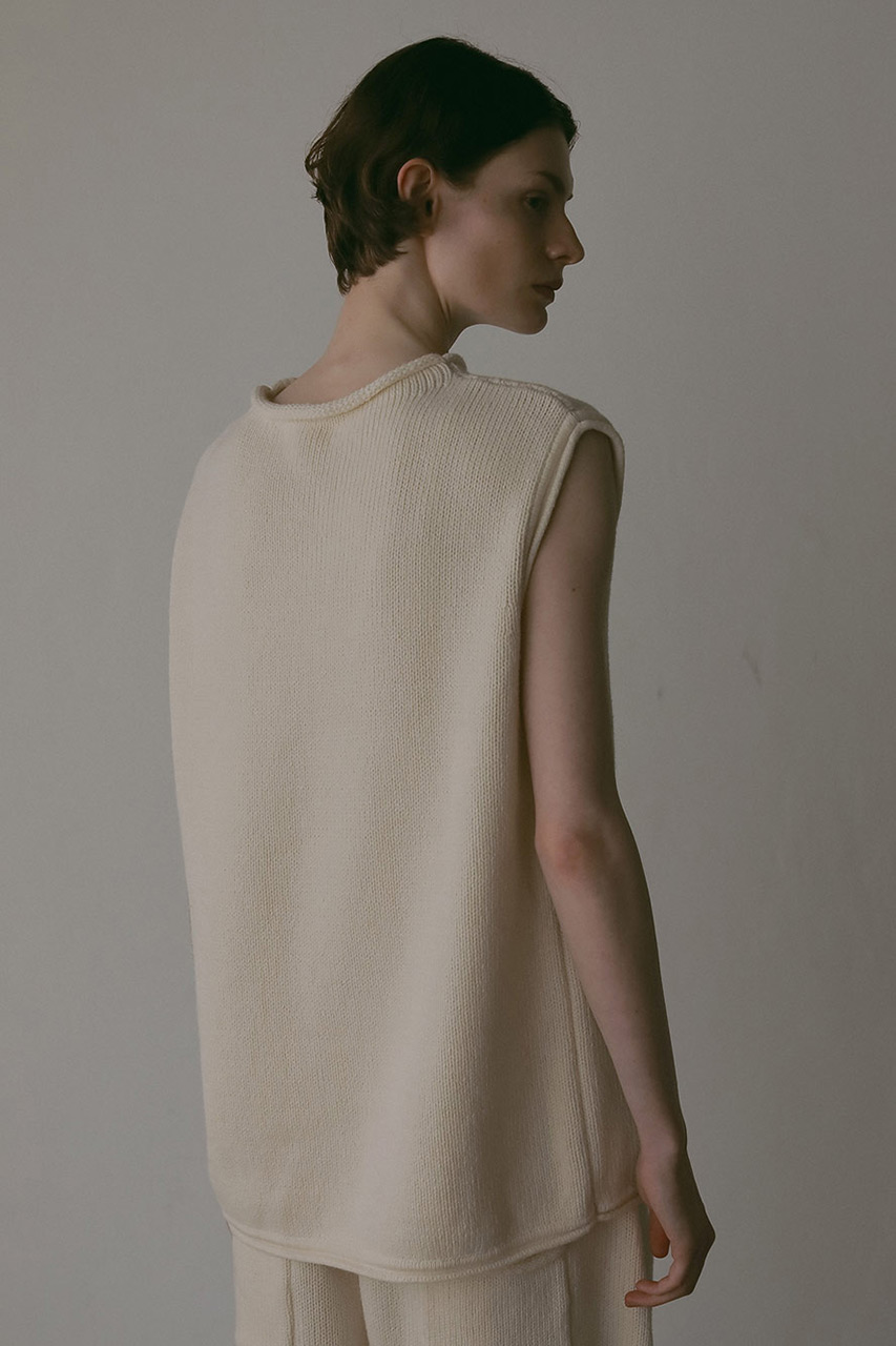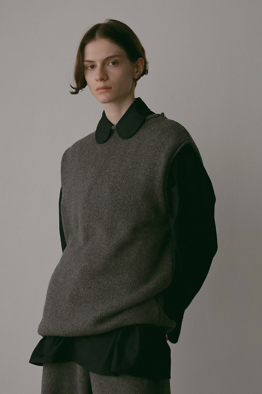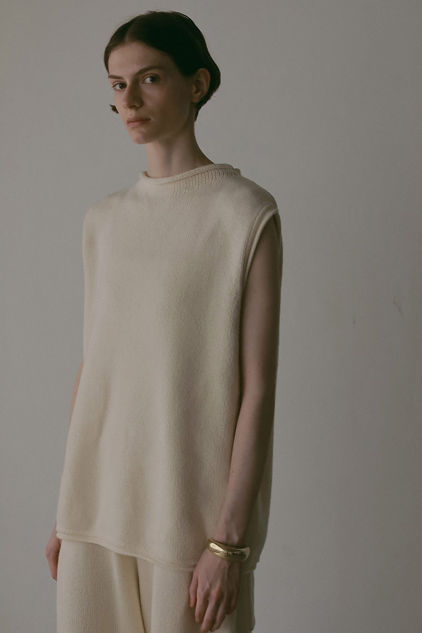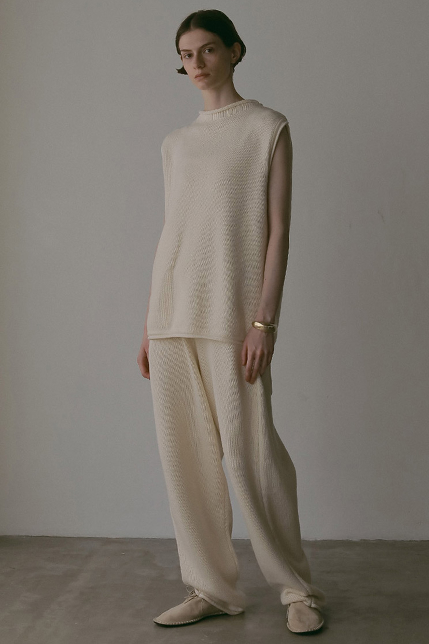 秋の気配をまとった、コットンブレンドのミドルゲージニット。ざっくりとした編み地と軽やかな仕上げが、自然体でいながらもどこか洗練された雰囲気を演出。セットアップとしても、単品としても、心地よさとスタイルを両立する一枚。