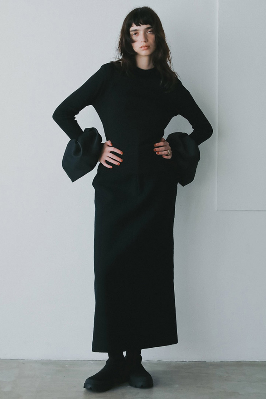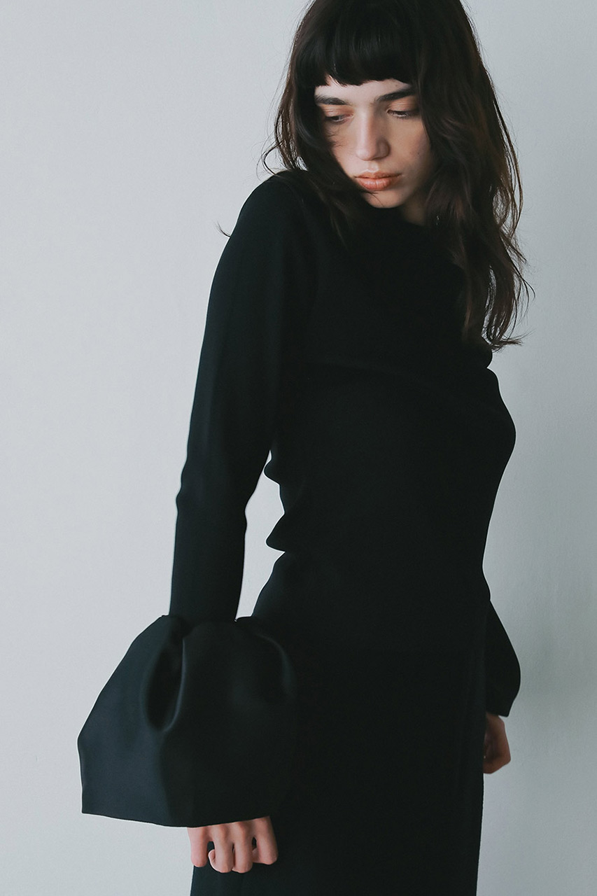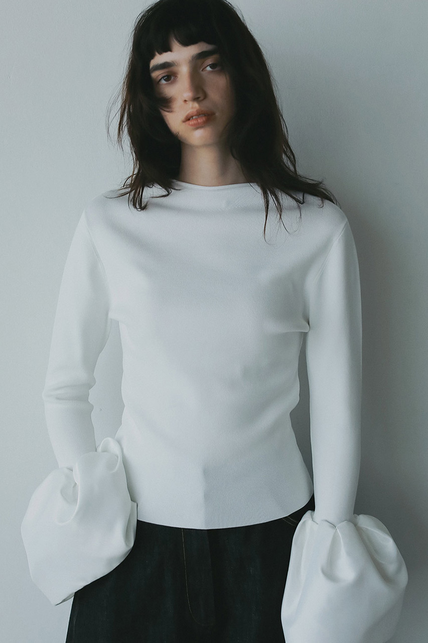袖のボリュームが印象的な、ちょっと特別なニットトップス。