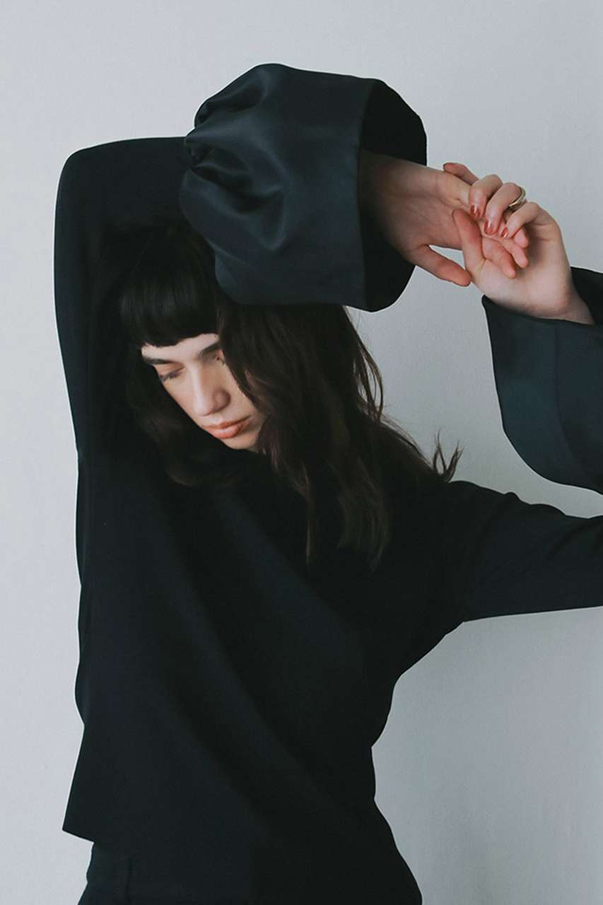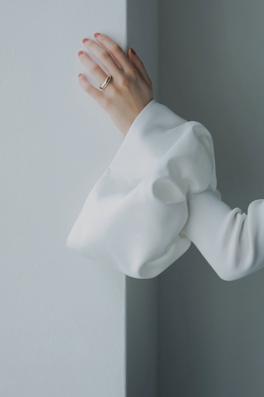 袖口をくしゅっとたるませて、抜け感のある着こなしに。