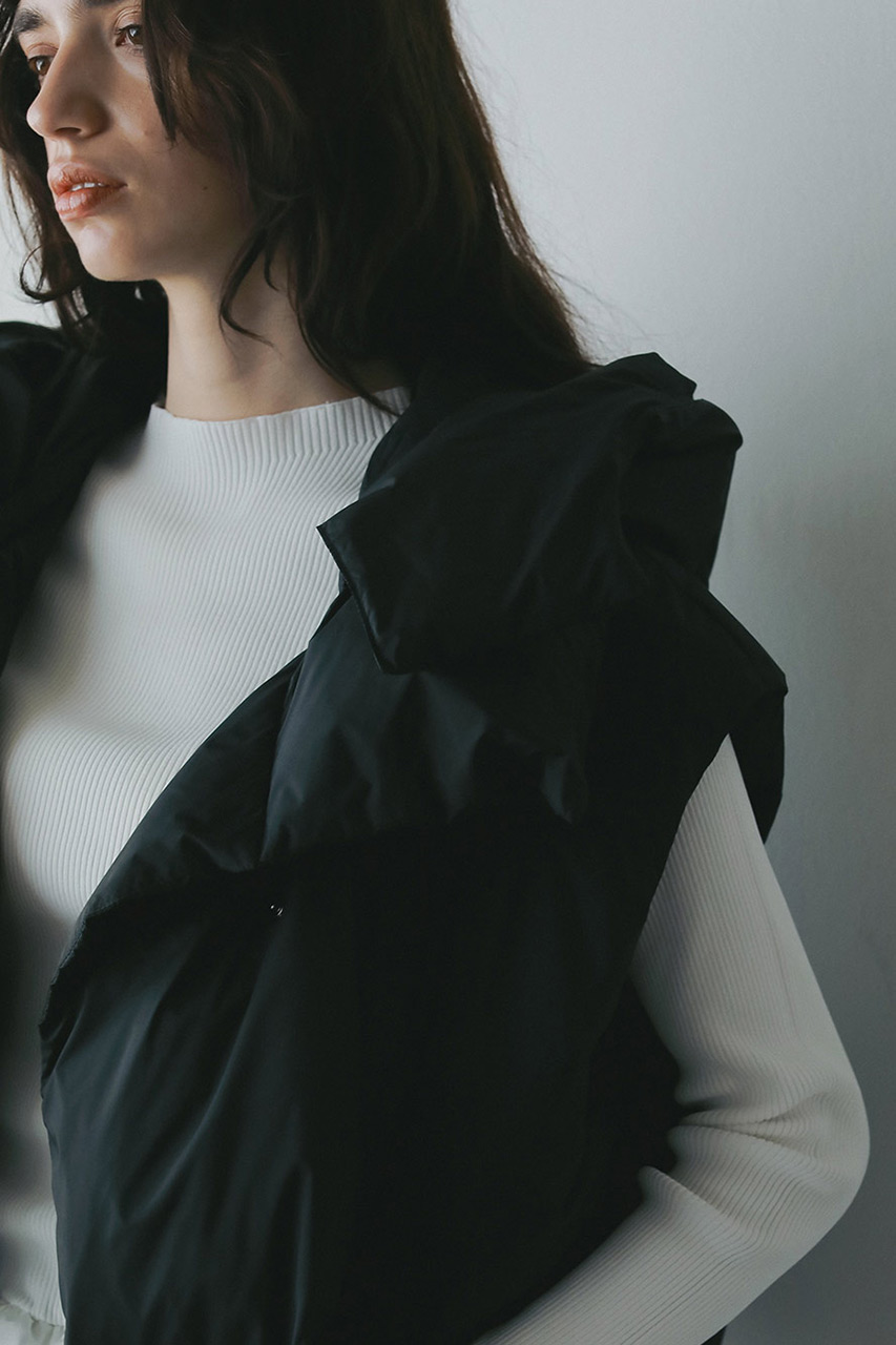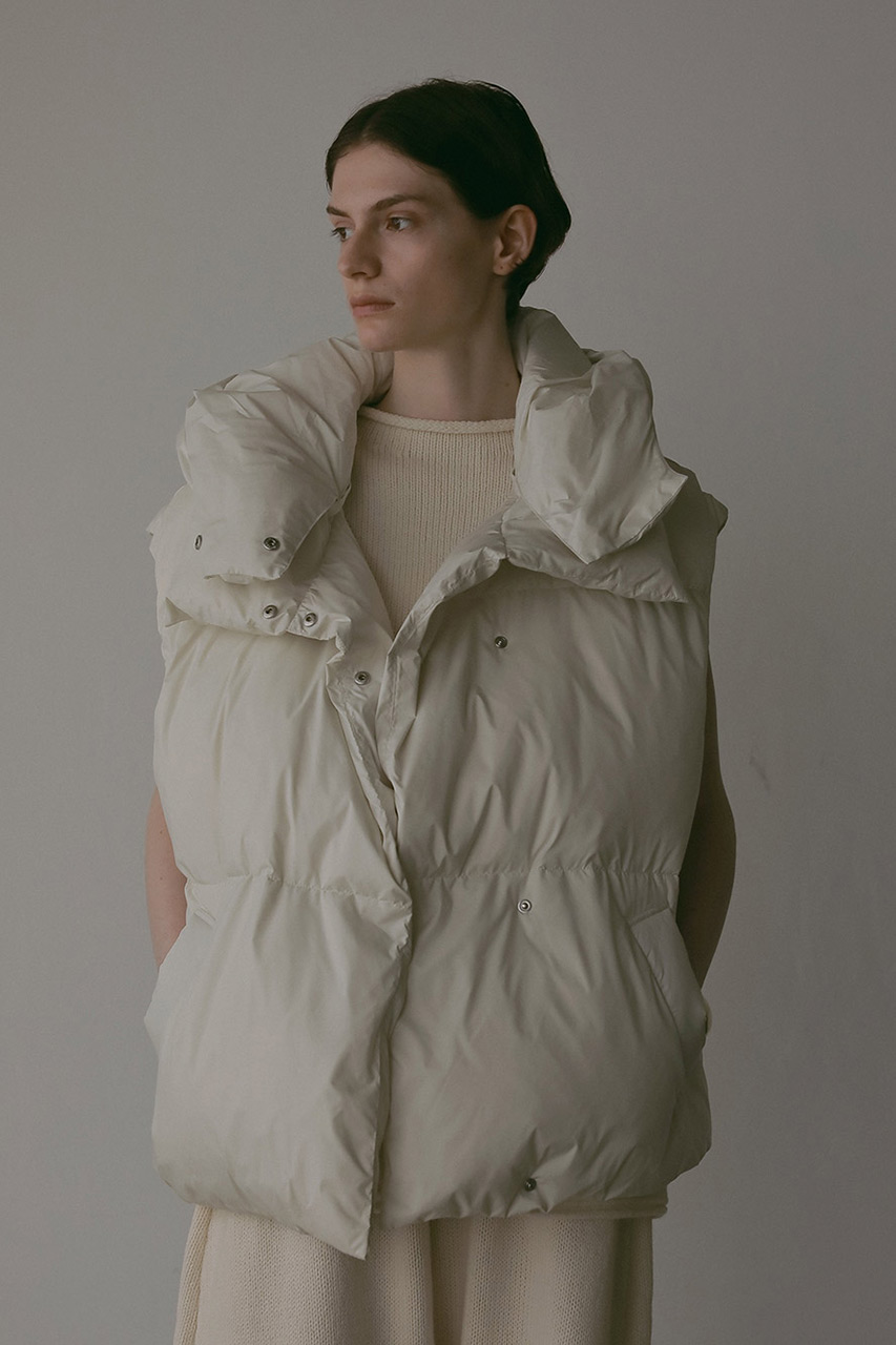 たっぷりのダウンで生まれる、丸みのあるシルエットが魅力のダウンベスト。
