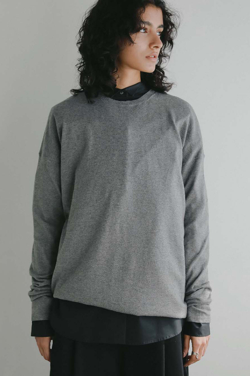 柔らかく肌ざわりの良いカシミヤをブレンドしたコットン素材の糸を仕様したハイゲージのニットプルオーバー。