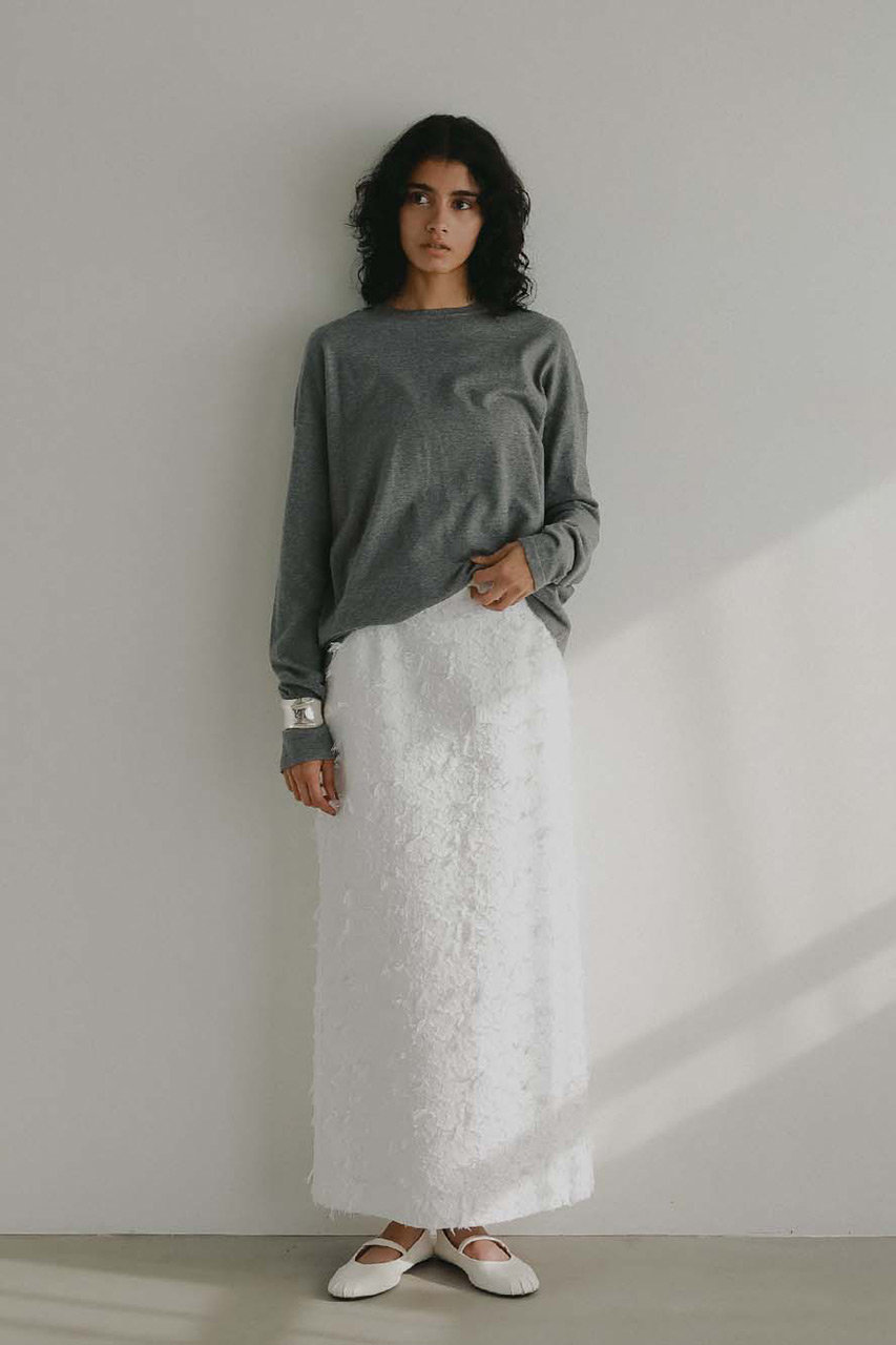 サテンパンツなど艶感のあるボトムと合わせて質感の違う大人なコーディネートをお楽しみいただけます。