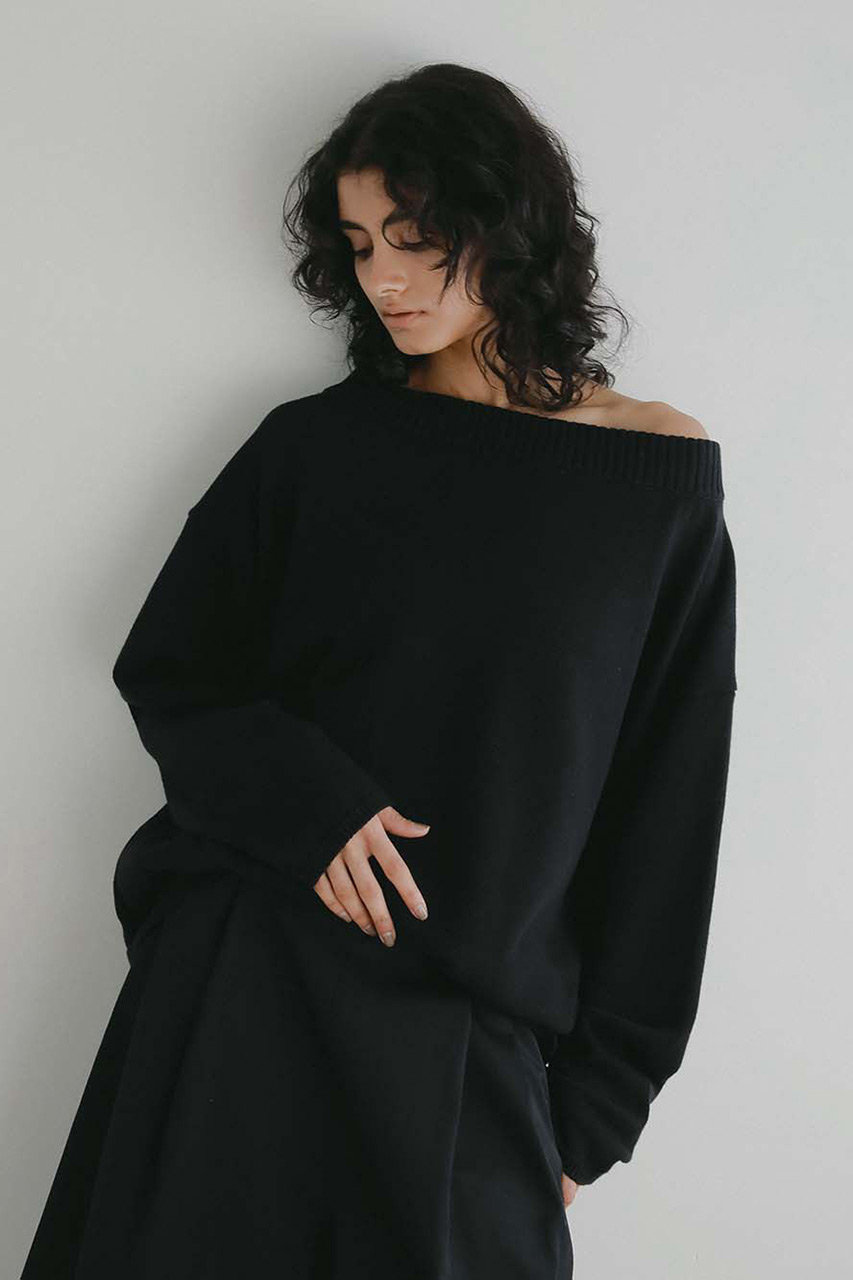 少し大きめにあいた衿ぐりが大人な印象でご着用いただけます。