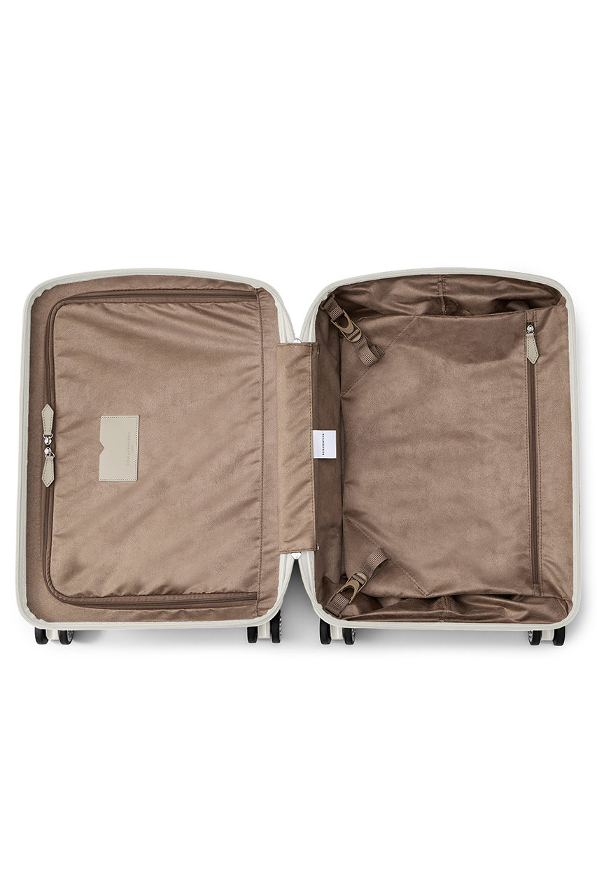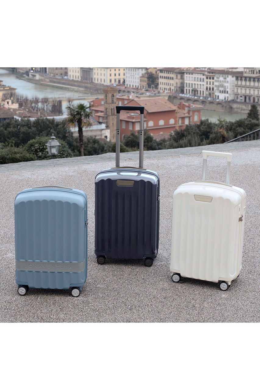 イタリアの老舗「ブリックス」の高い技術と「ボナベンチュラ」の洗練されたデザインが融合した、優美な光沢をまとうシャイニーなポリカーボネートスーツケース。軽量で耐衝撃性に優れ、耐熱・耐UV性も備えています。上品なレザーアクセントと滑らかなスエードタッチの内装が華やかで洗練された印象を与えます。360度回転の両輪キャスターは石畳も軽快に走行可能。TSAロックや調節可能なハンドルなど、機能面も充実。「ボナベンチュラ」の“永遠の幸福”を願うオリジナルモチーフが細部に施した、特別な逸品です。保管用ロゴ入りトロリーケースカバー付き。