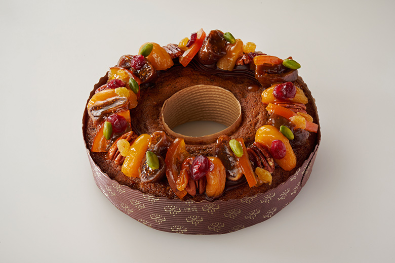 果肉感あふれるフルーツの食感が楽しめる、リッチで温かみのある味わいです。パーティーの締めくくりのデザートや、優雅なティータイムに。幸せを運ぶ「祝福の輪」クーロンヌは、冬のギフトとしても喜ばれること間違いなし!