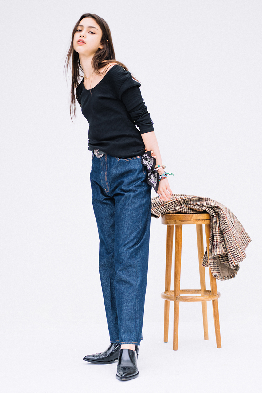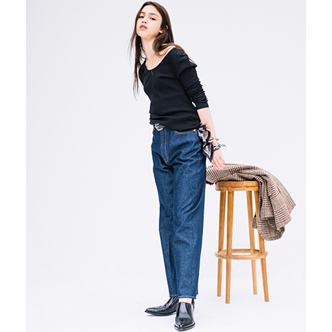 歴史のある王道ジーンズを女性の体型に合わせて改良したストレートシルエットのデニムパンツ。ヒップ部分に施したダーツで立体感のある綺麗なシルエットを実現。程よいフィット感があり、どんな体型の方にも合うようデザインされています。