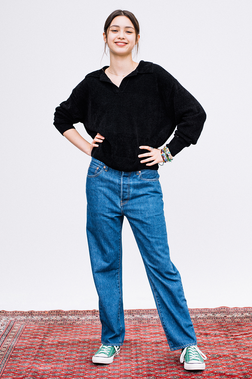 ハイライズのデニムパンツは、ストレートシルエットで体のラインを拾い過ぎない絶妙なサイズ感。ライトオンスのデニムを使用し、丸みのある女性らしいシルエットに仕上げ、脚長効果も期待大。どんな体型の方にも合うようにデザインされています。