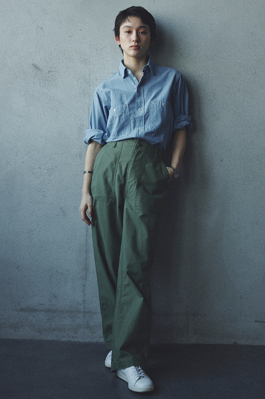 コットン素材のパンツは、扱いやすくシーズンレスでお楽しみいただけます。