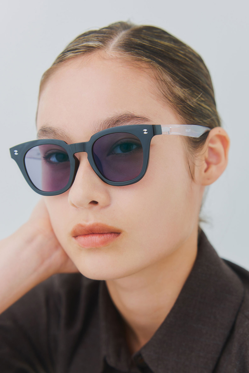グリーンレンズはカジュアルなセットアップにフレッシュさを、スモークレンズならオールブラックでモードに引き締め。