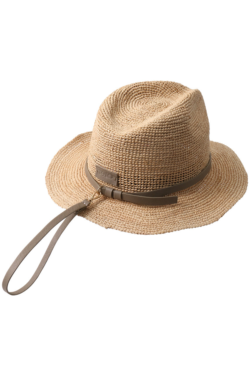 Tシャツ&デニムに合わせるだけでサマになる、中折れタイプのラフィアハット。ブランド創設年「1910」が型押しされたレザータグが、バックスタイルのさり気ないアクセントに。取り外し可能なストラップ付きで、バッグのハンドルにかけたり、ベルトループに通したりと、コーディネートの幅を広げてくれるアイテム。