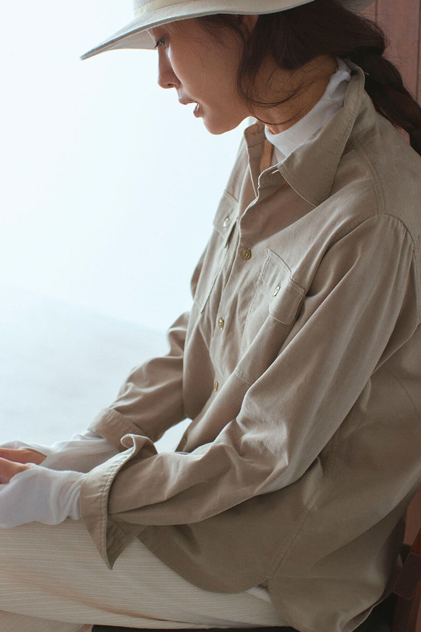 ブランド定番の形で仕立てた、着回し自在なコーデュロイシャツ。ワークテイストをベースにしつつも、女性らしいすっきりとしたシルエットに仕上げました。インでもアウトでも様になり、袖をまくればこなれ感を演出。胸元のフラップポケットがアクセントになり、羽織りとしても使える万能アイテムです。