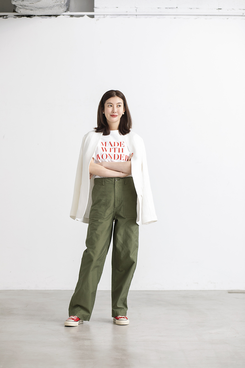 WHITEとBEIGEの柔らかなカラーが装いに清潔感と洗練をプラス。